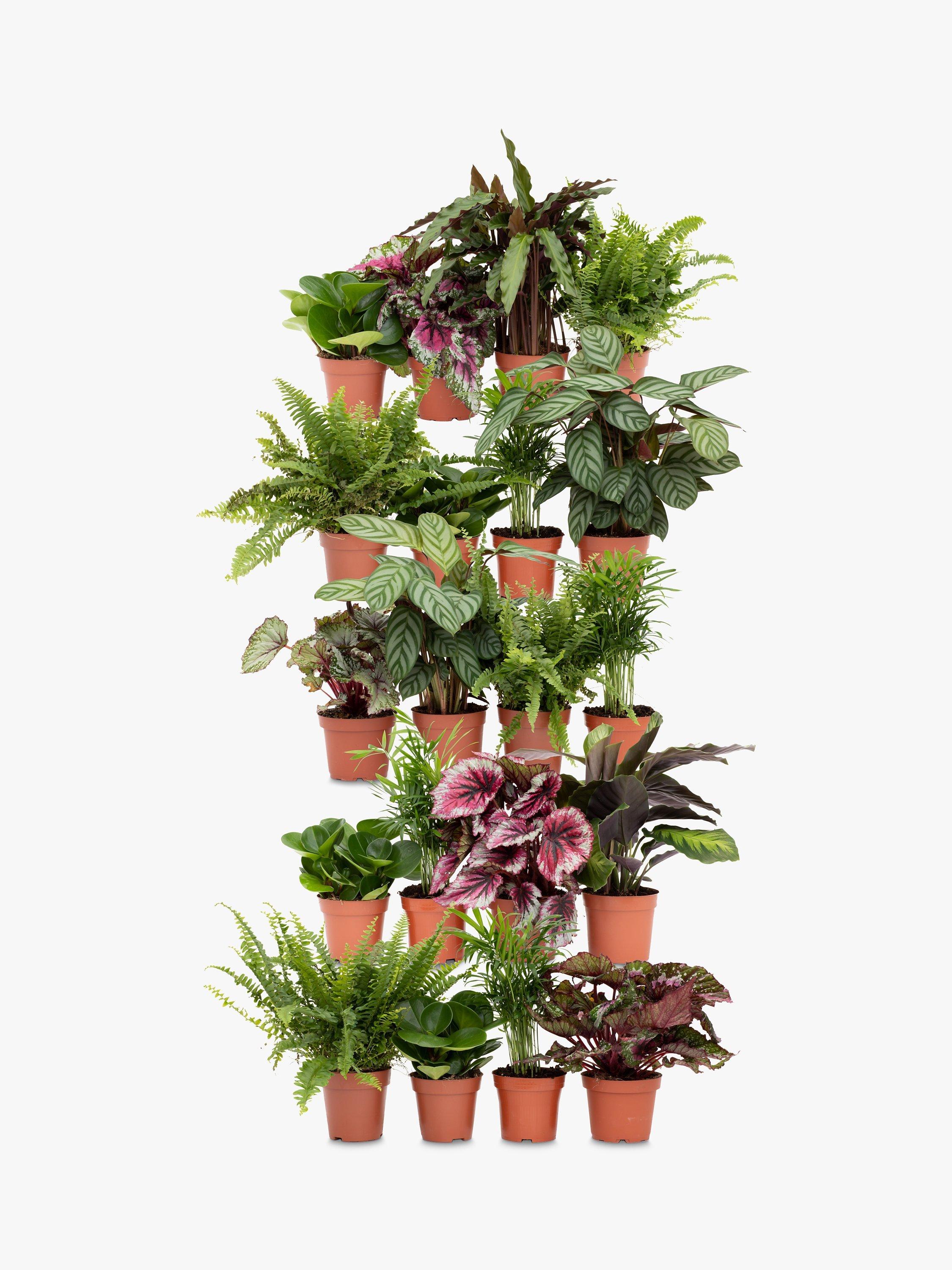 - 20 x Mix of House plants (4 x Calathea, 4 x Begonia Beleaf, 4 x Peperomia Obtusifolia, 4 x Chamaedorea, 4 x Boston Fern) Please note: this mix may vary depending on the time of year.