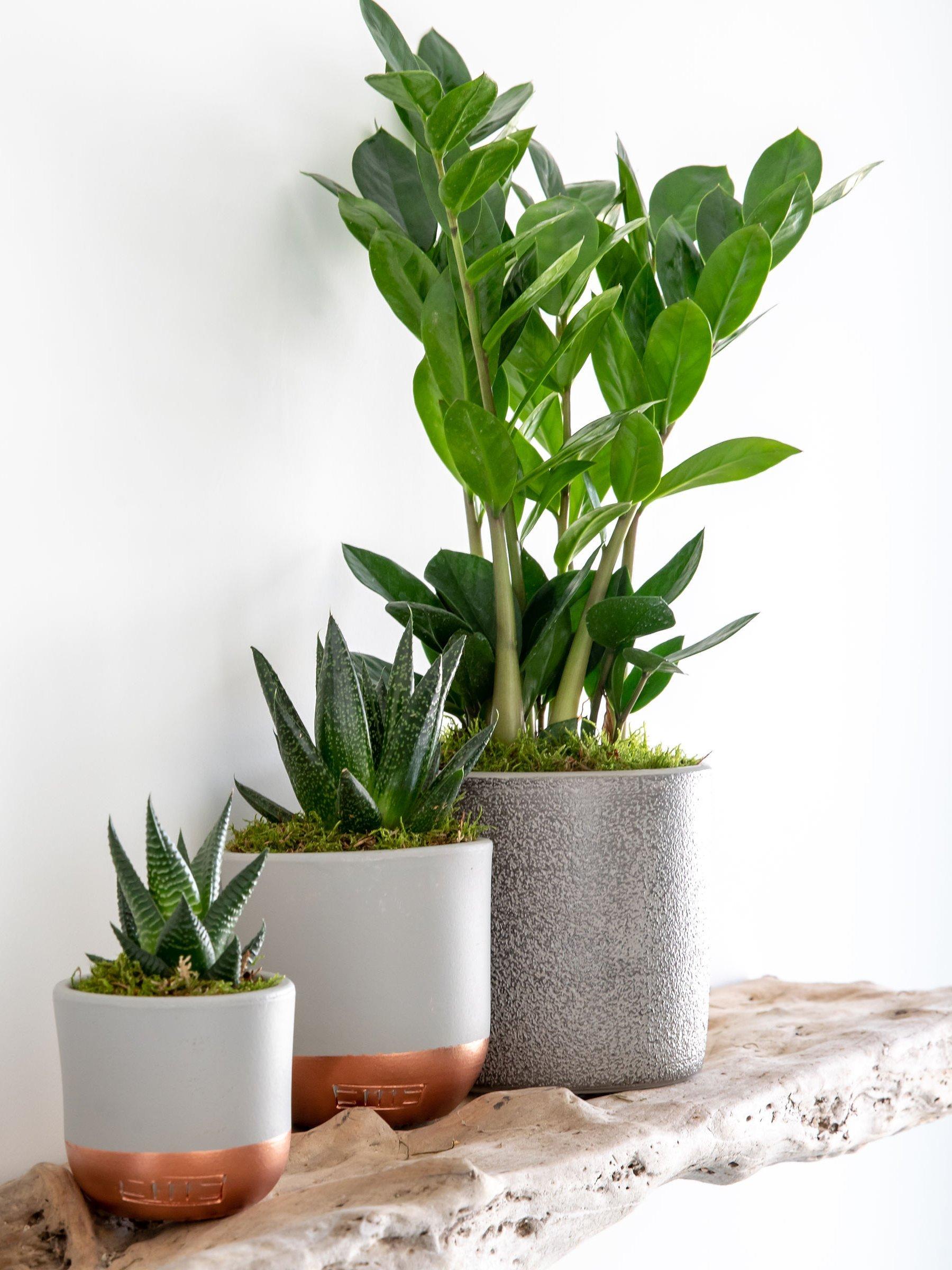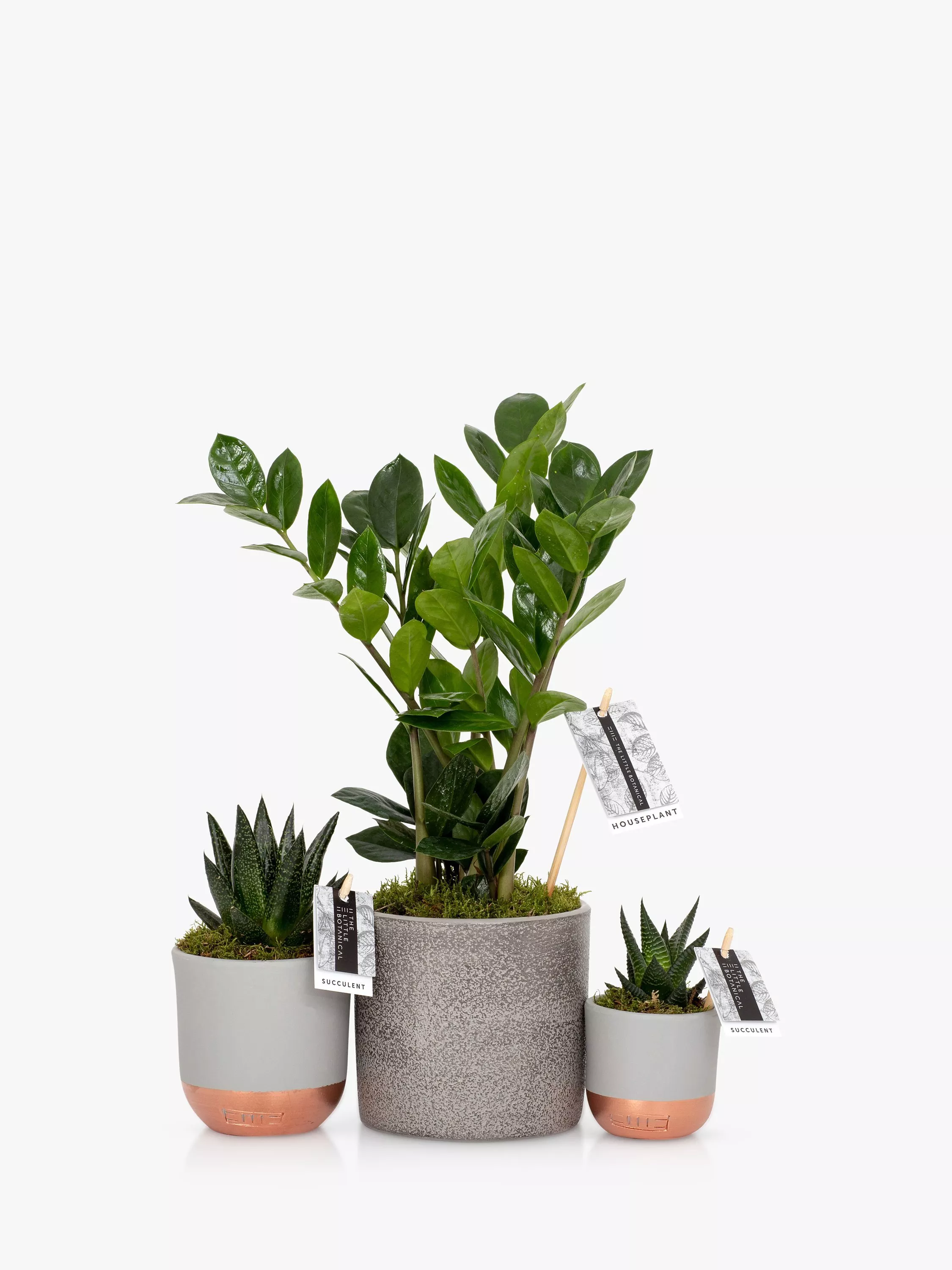 Plants included; a Zamioculcas Houseplant, a Medium Aloe Succulent and a Mini Haworthia. These plants are the survivors of the plant world. They will survive a dark corner or a light spot. They don't even mind if you forget about them for a month! Water once every 3-4 weeks, these tough little guys are used to an arid environment. Plants arrive in separate boxes, once unpacked they will instantly make your living space green.