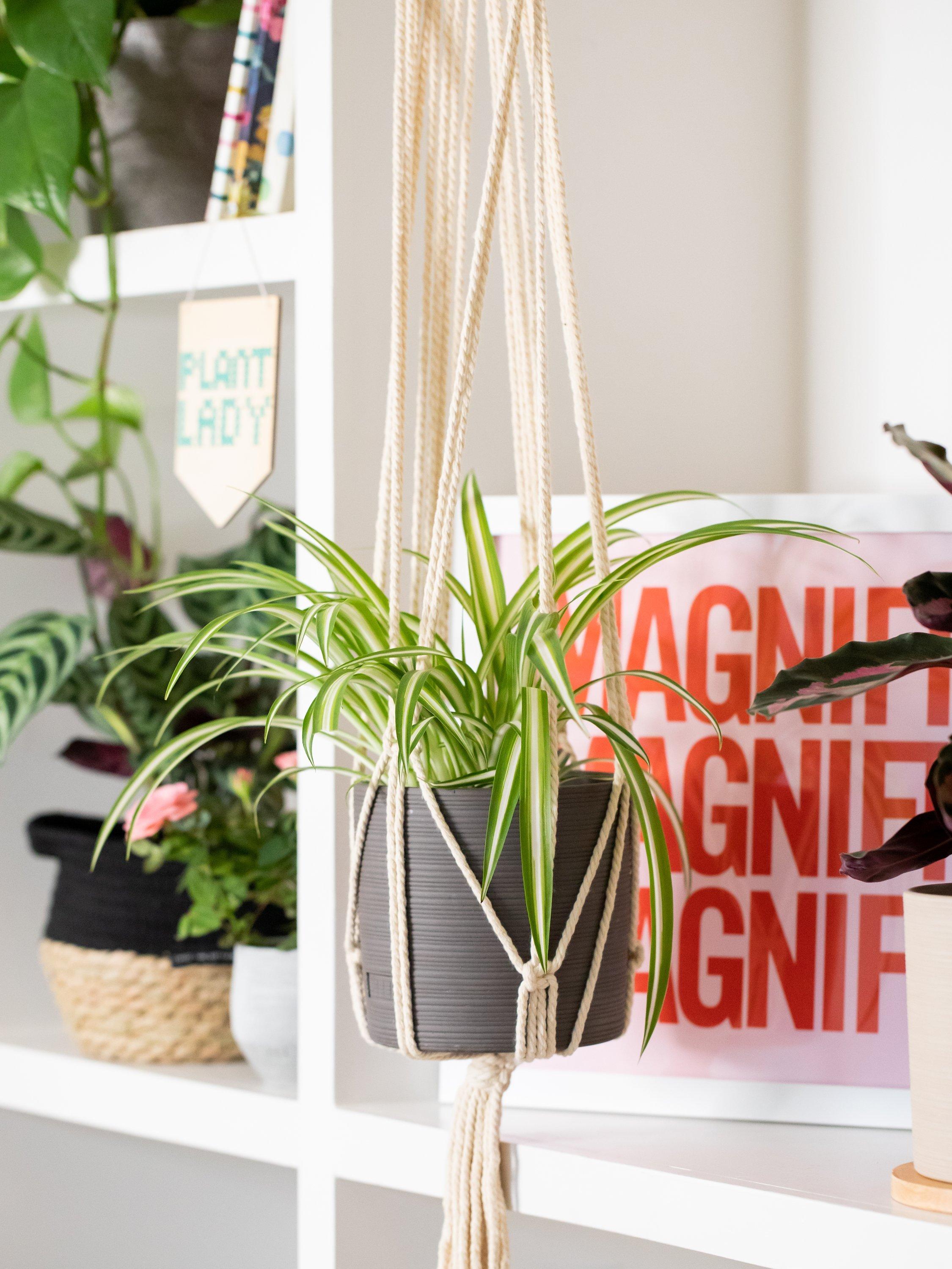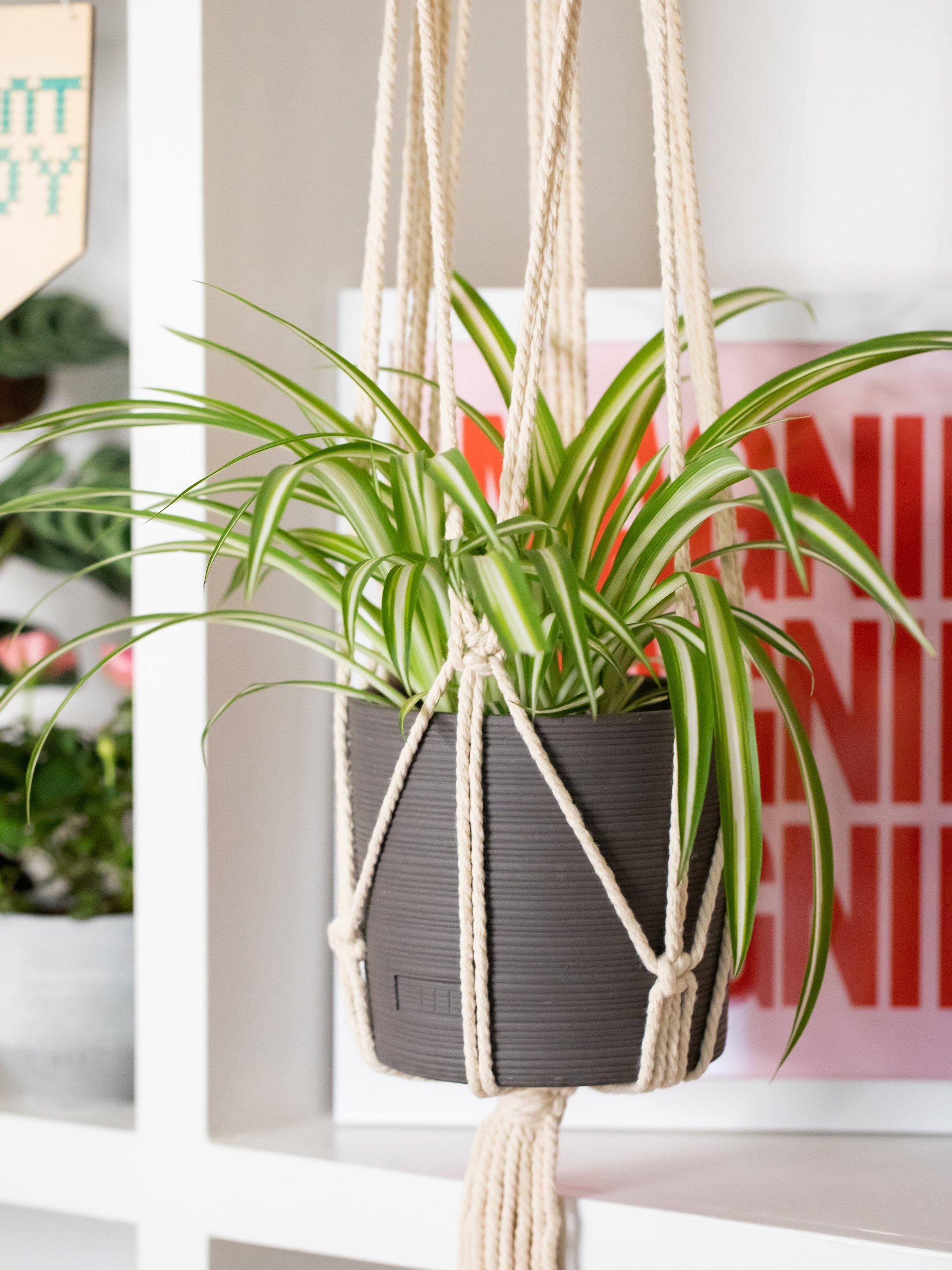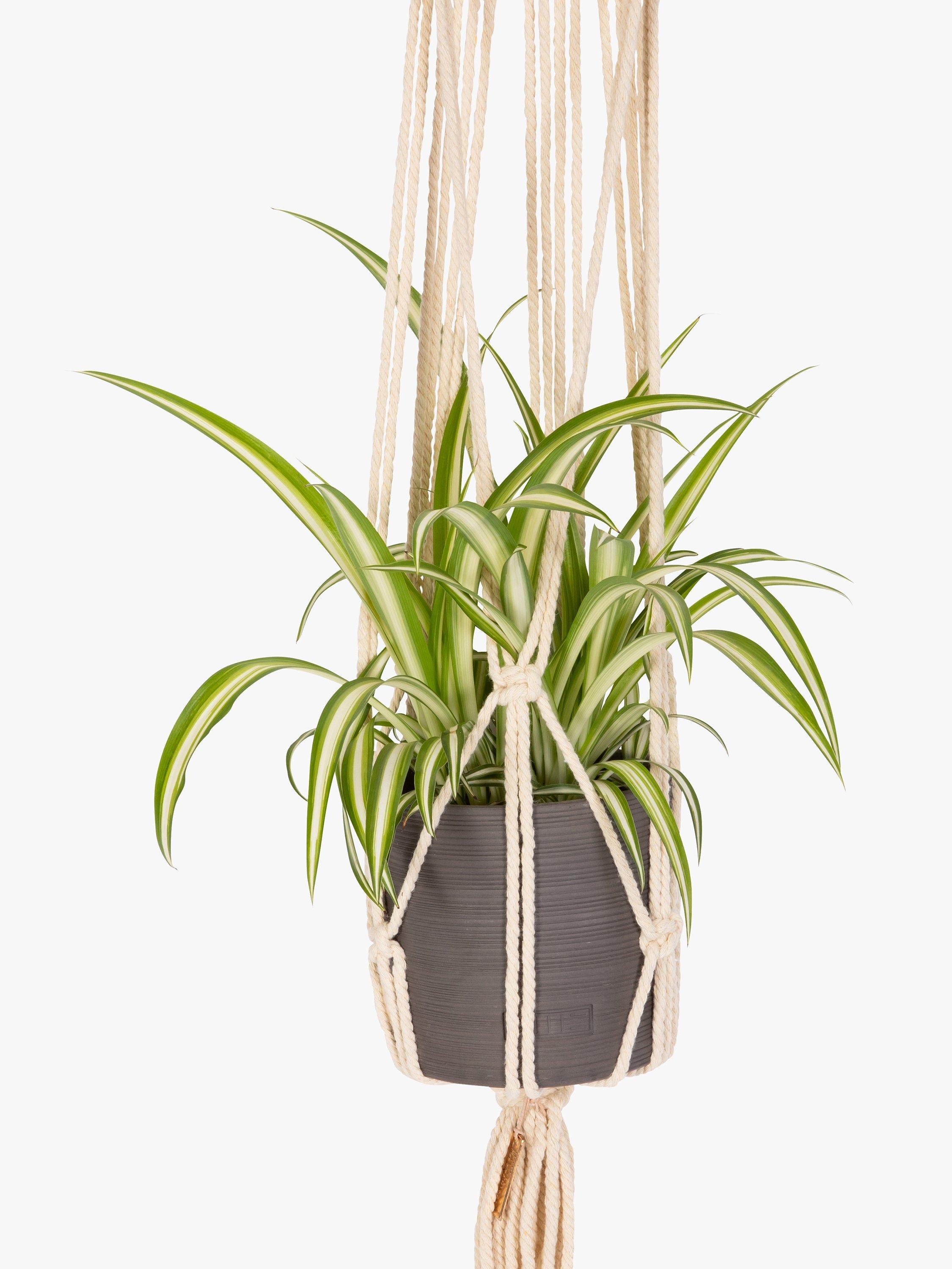 This gorgeous natural macrame hanger with Spider plant is a ready-made plant hanging solution. This set includes all you need to create that sought-after jungle look, now you just need to find the space to hang this trailing beauty.