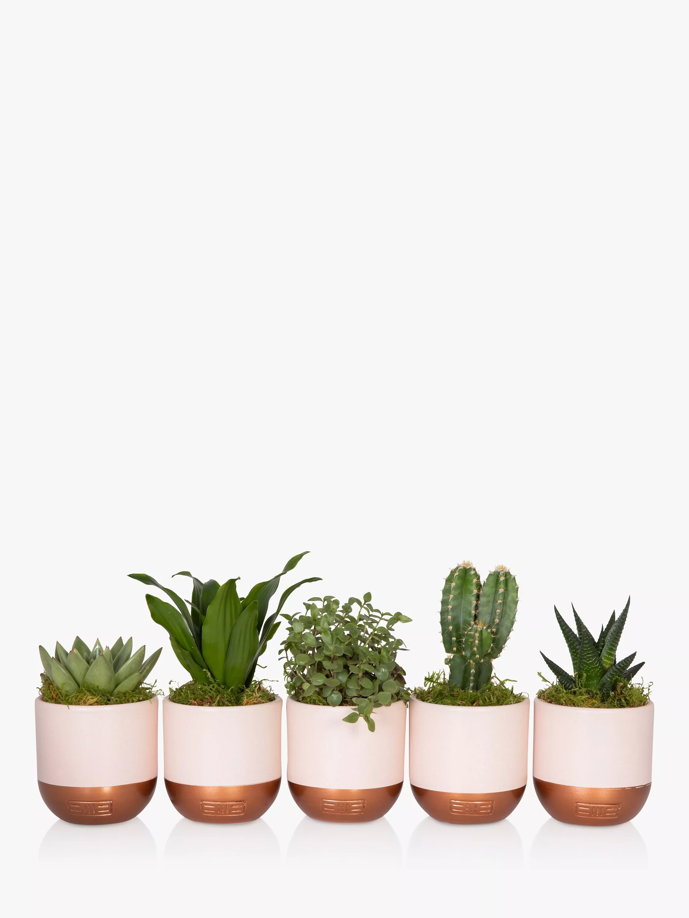 The Little Botanical Pink Shelfie Bundle is the cutest selection of succulents and cacti in their bespoke soft pink and copper ceramics. This gorgeous gang of plants will bring a little bit of love to your table or shelf and are the perfect gift. The bundle of greenery in pink pots will jazz up your living space and brighten up that corner or shelf. Whether you purchase this bundle as a gift or for yourself, these plants are the perfect size to style a shelf or coffee table.
