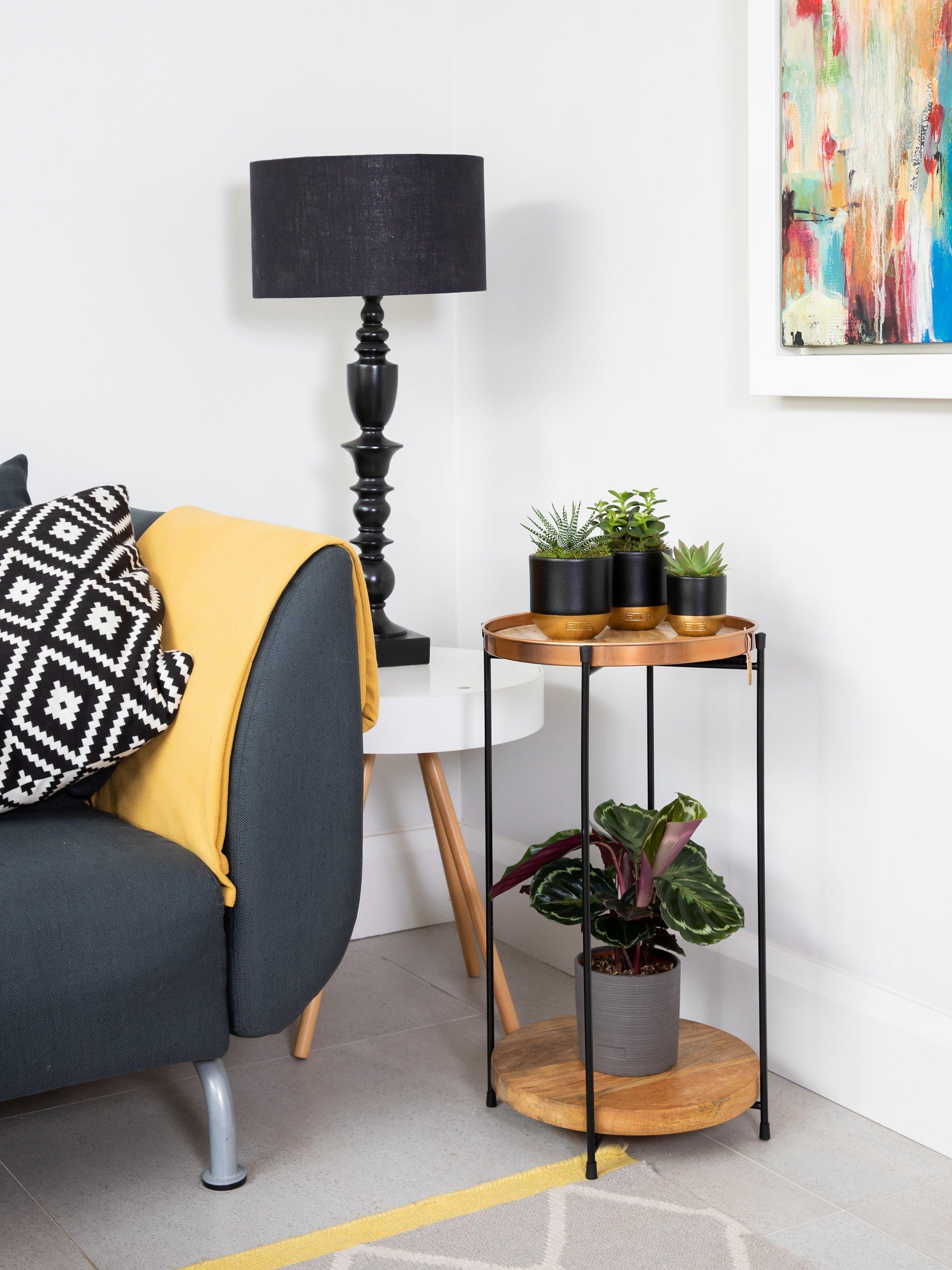 The Little Botanical Plant Stand Table is a show-stopping piece that creates a gorgeous focal point in the room. Comprised of a mango wood base, stylish copper effect tray with mango wood insert and black metal legs, this modern piece is an interior-lovers dream.This chic plant stand table will add a finishing touch to your interior style, effortlessly creating a stylish corner in your home. Mango wood is incredibly hard-wearing, so you can rest assured it will continue to last for years to come.