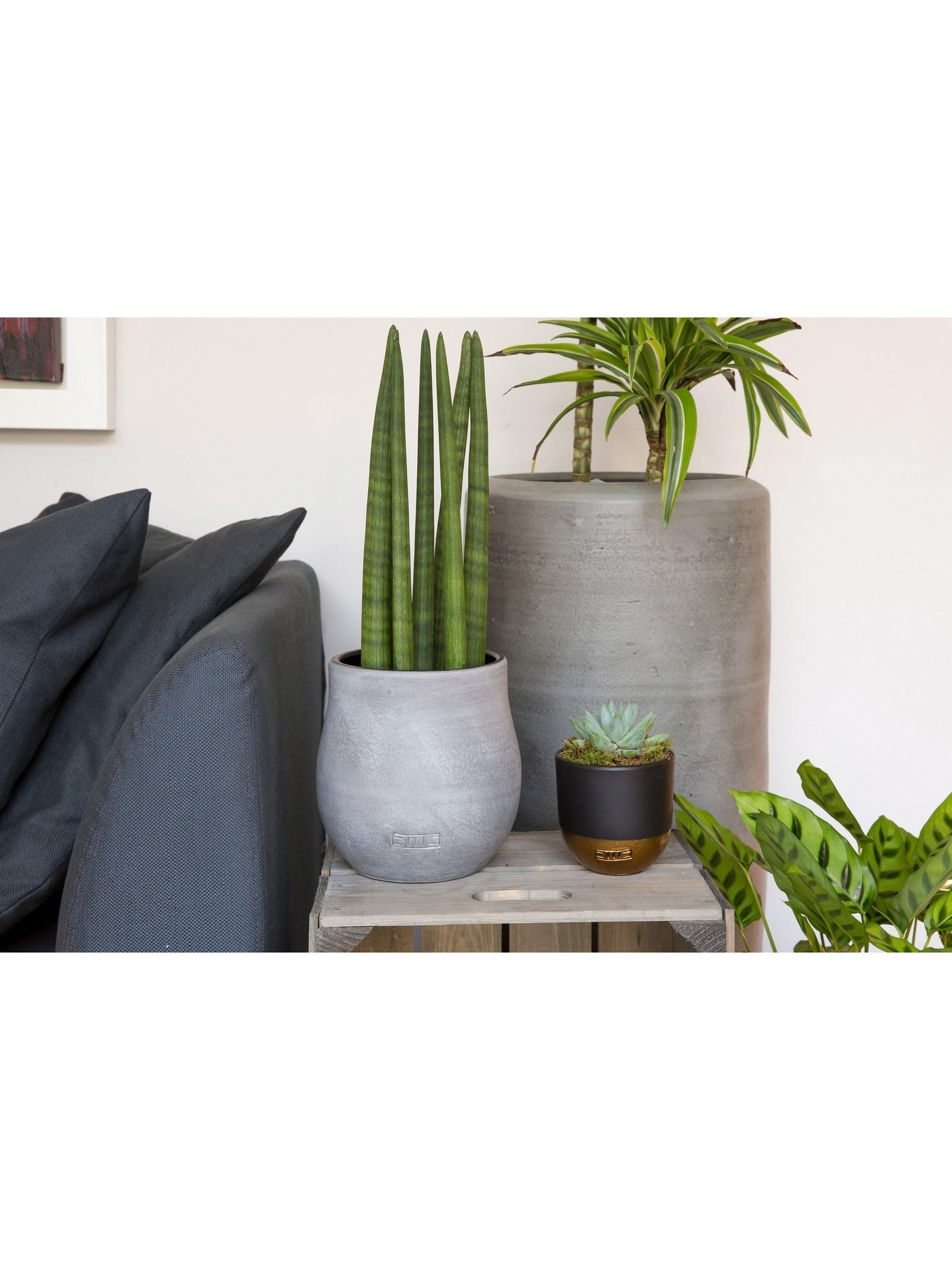 The plant and ceramic pot will be delivered in separate boxes. Just drop the plant into our signature grey ceramic for an instant green addition to your living space.