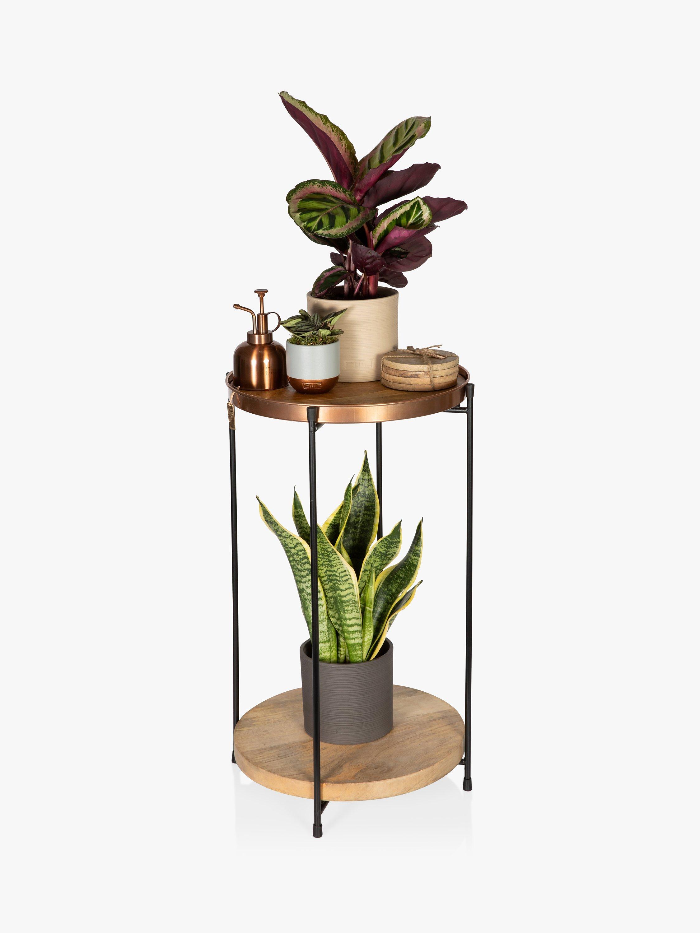 The Ultimate Plant Lover's Gift, this set has everything you need to style a space and care for your plants in one bundle. The chic plant table, accompanied by the stylish copper mister, mango wood coasters and beautiful plants, will instantly update your interior.