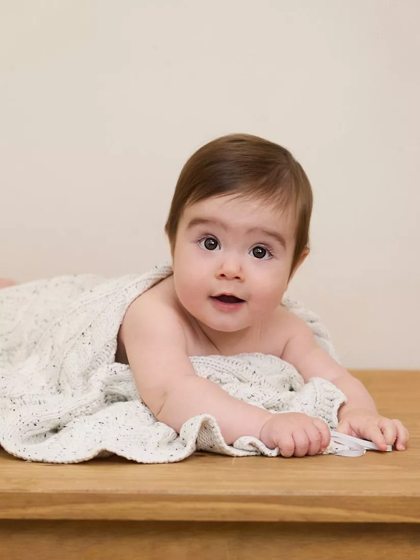 Beautifully designed, this textured cable knitted baby blanket is made from 100% super soft cotton. A timeless blanket that is the perfect addition to baby's nursery. Comes ribbon wrapped for a perfect baby gift.