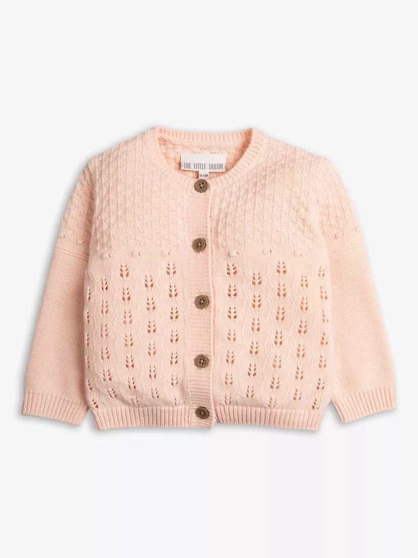 The Little TailorBaby Cotton Pointelle Knit Cardigan, Pink