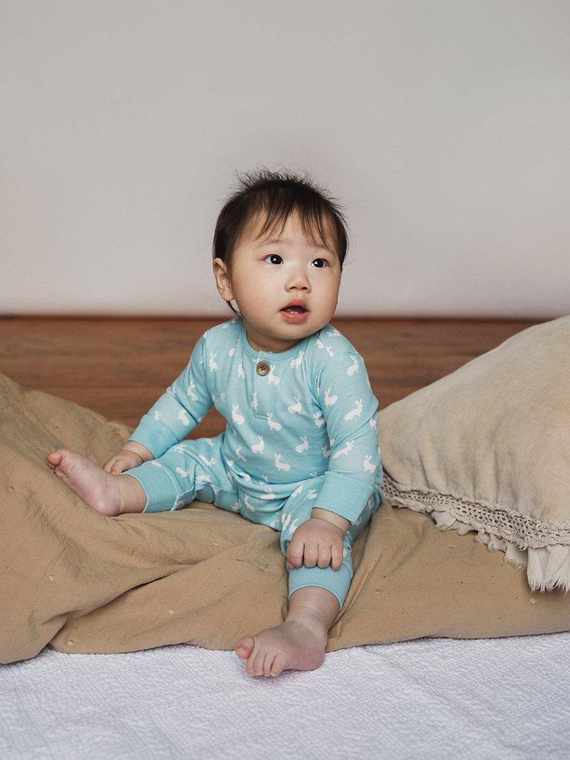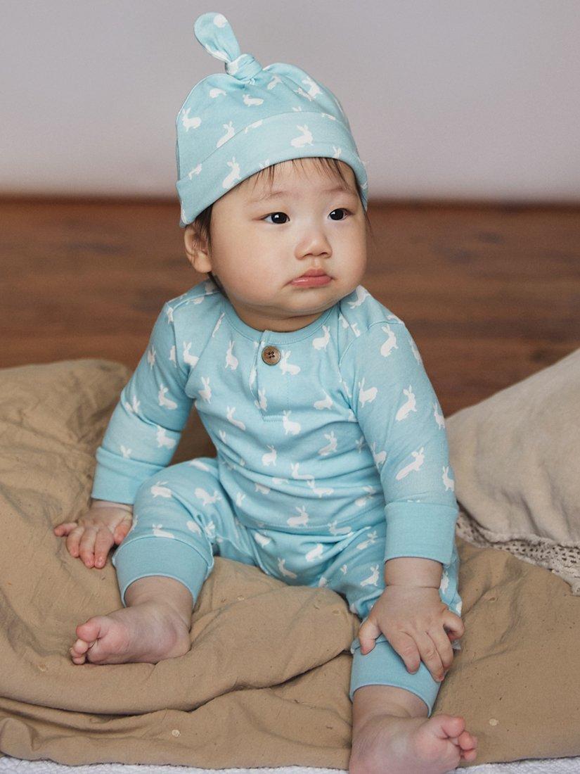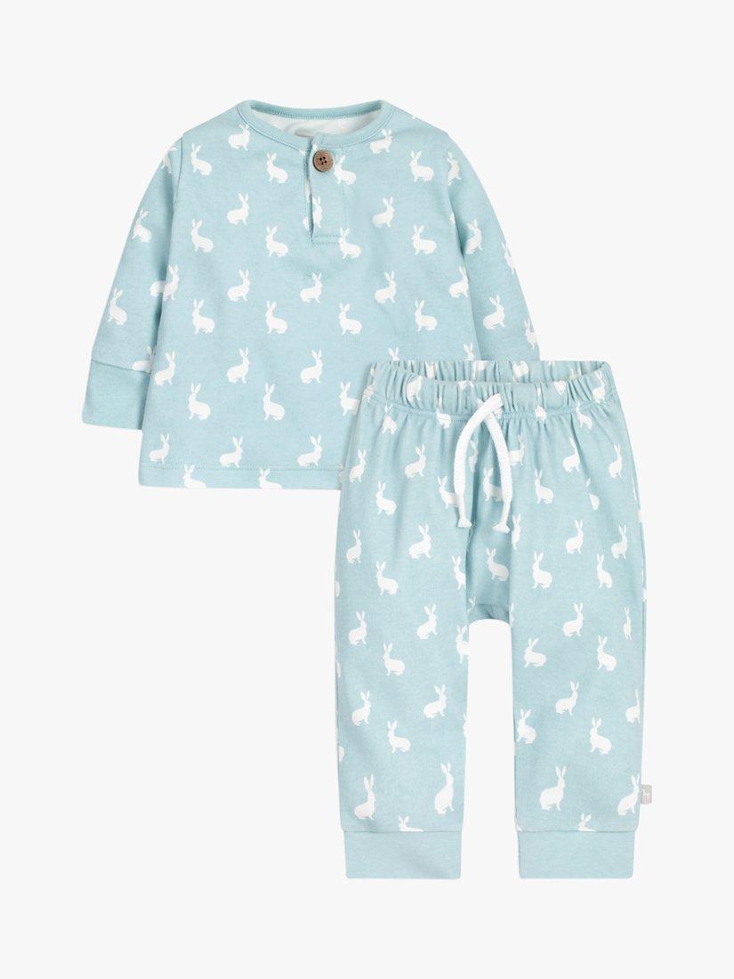The Little TailorBaby Hare Print Jersey Long Sleeve Top and Trousers Set, Blue