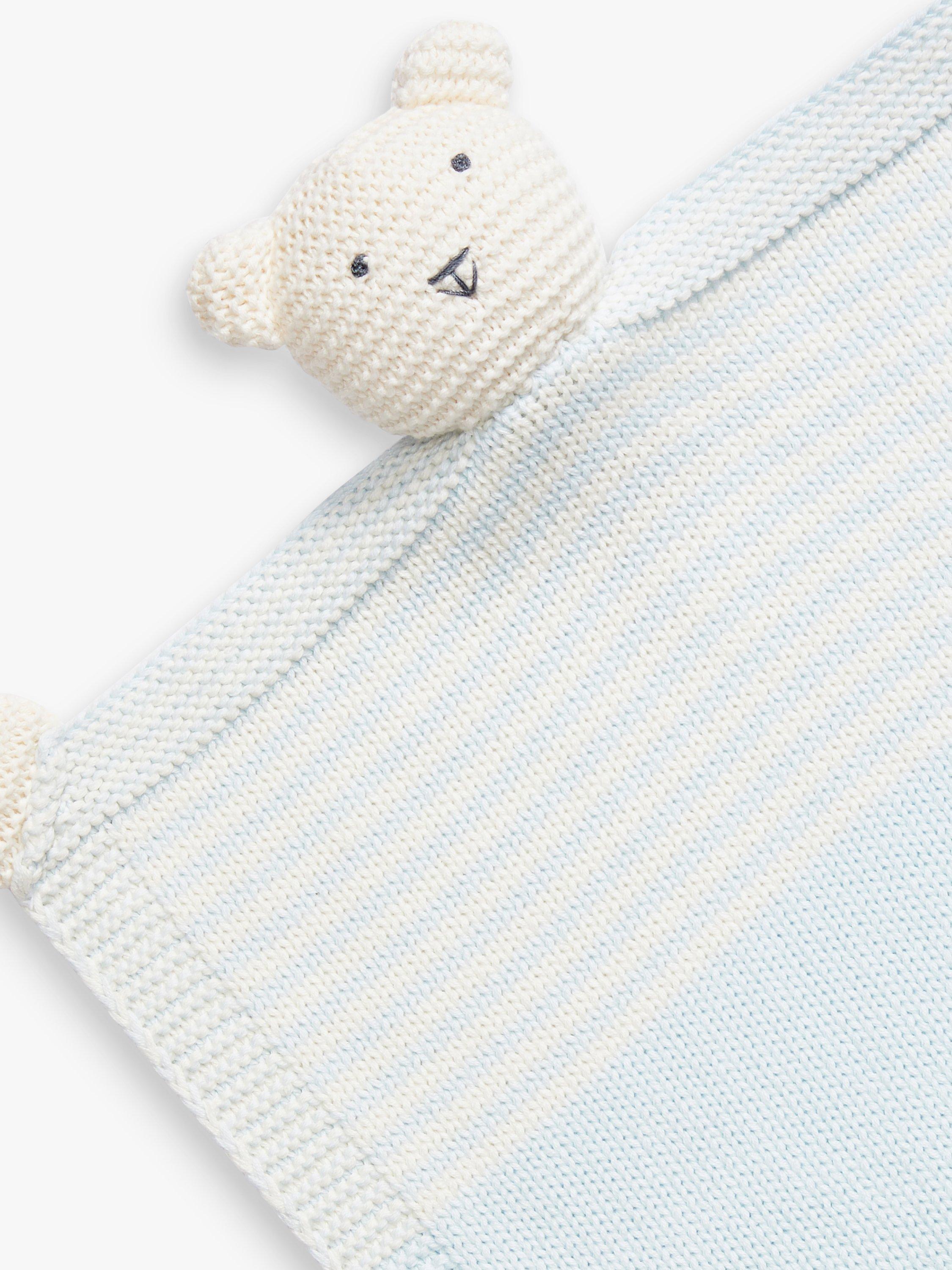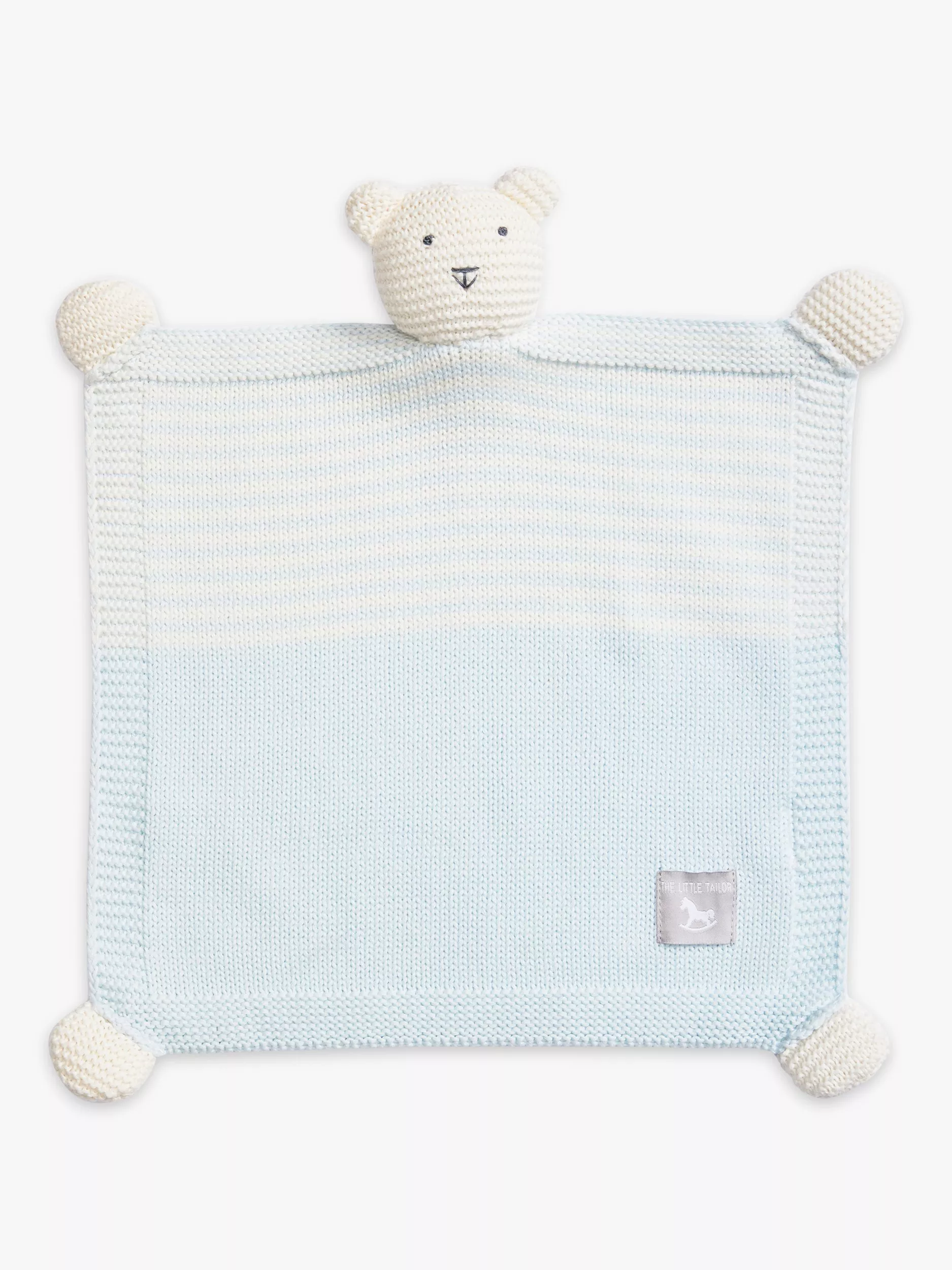 The comfort blanket comes with a Teddy head that's hand-stitched making each one unique. It is completed with little teddy paws in each corner that are perfect for little hands to grip and play.