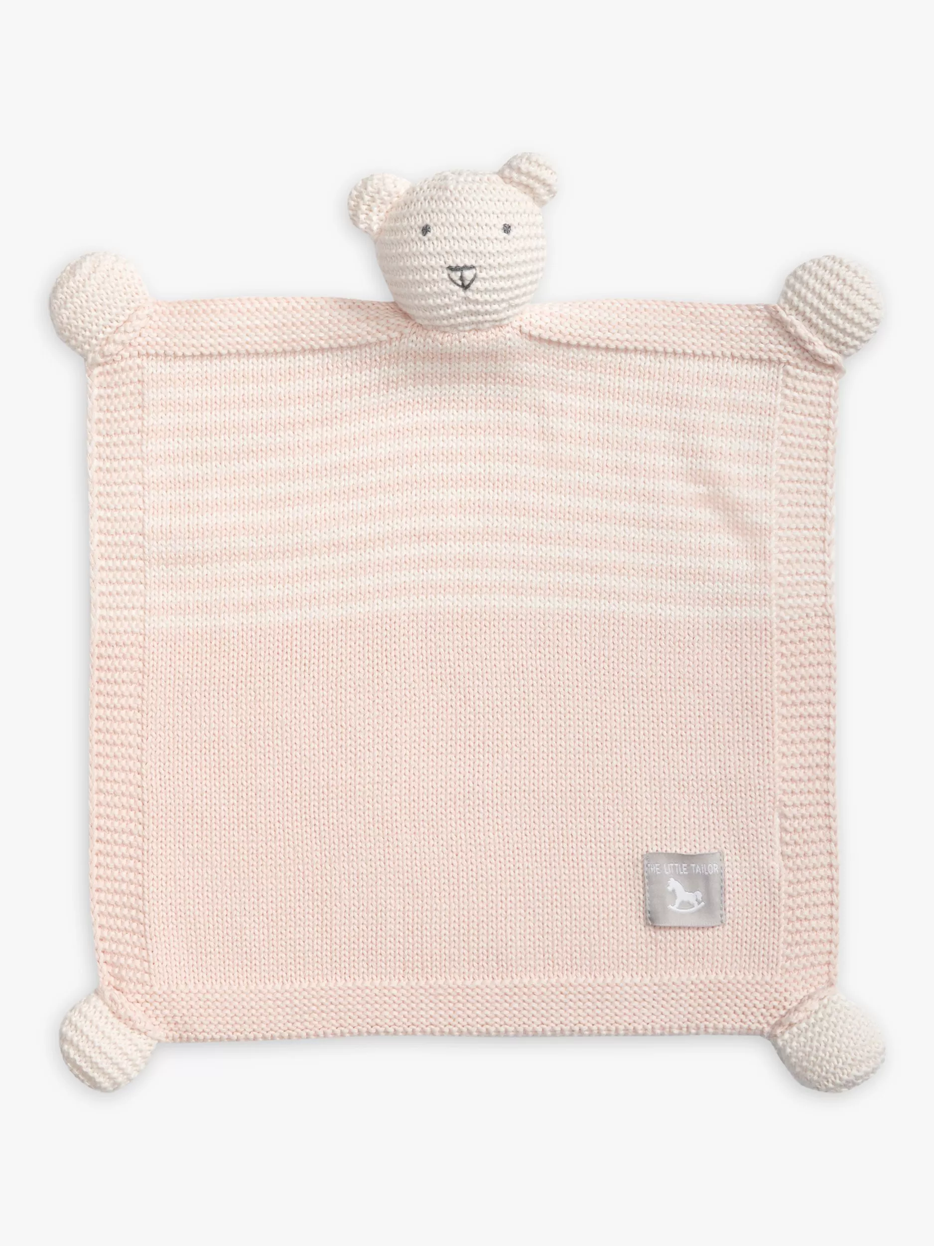 The comfort blanket comes with a Teddy head that's hand-stitched making each one unique. It is completed with little teddy paws in each corner that are perfect for little hands to grip and play.