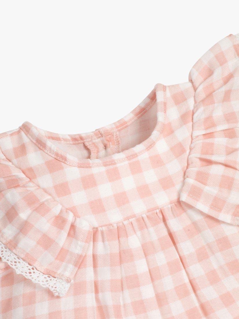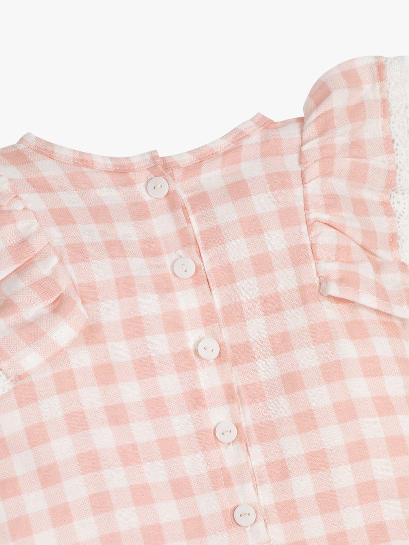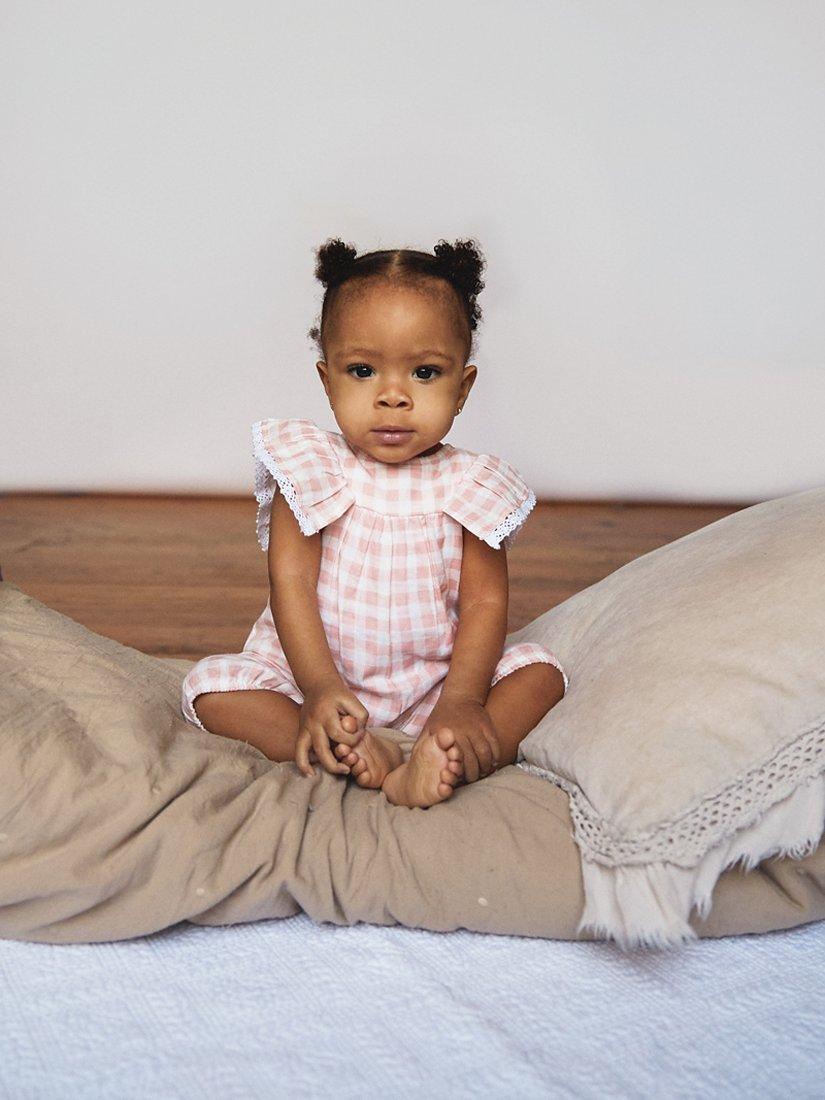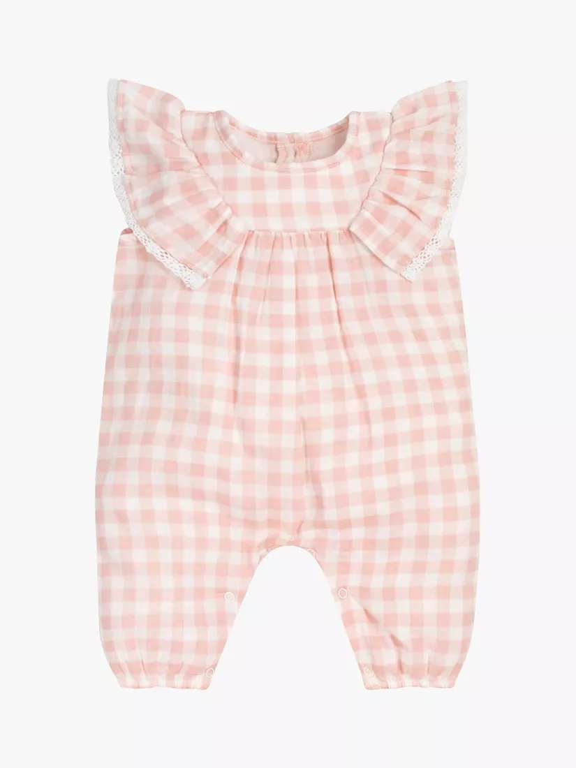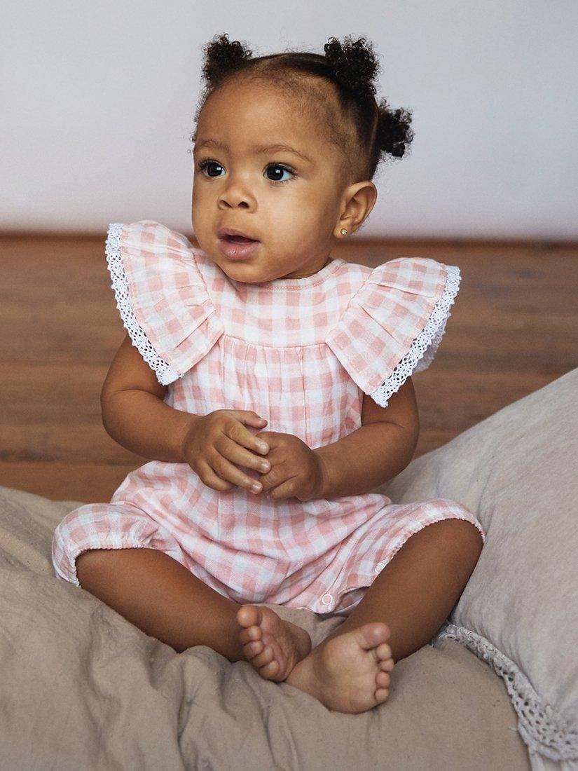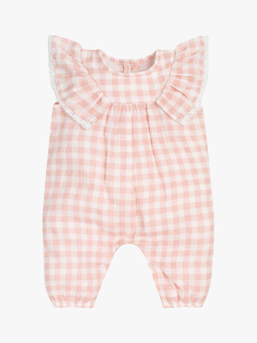 Made from light and airy cotton muslin, this playsuit includes crotch poppers for sizes under two years.