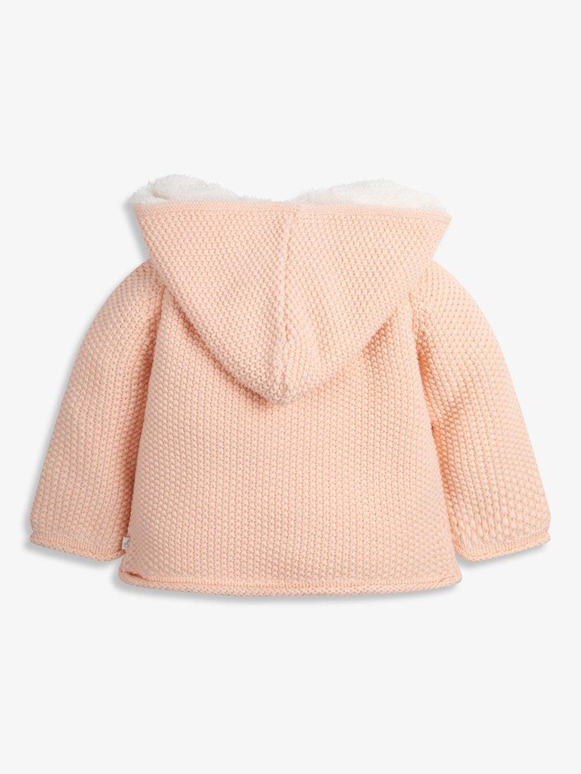 This knitted pram coat ensures they'll stay cosy when you're on the move. Crafted from flexible textured cotton, it has an ultra-plush lining that's super-soft and offers warmth. Plus, a hood, turn-back cuffs and a double-button fastening.