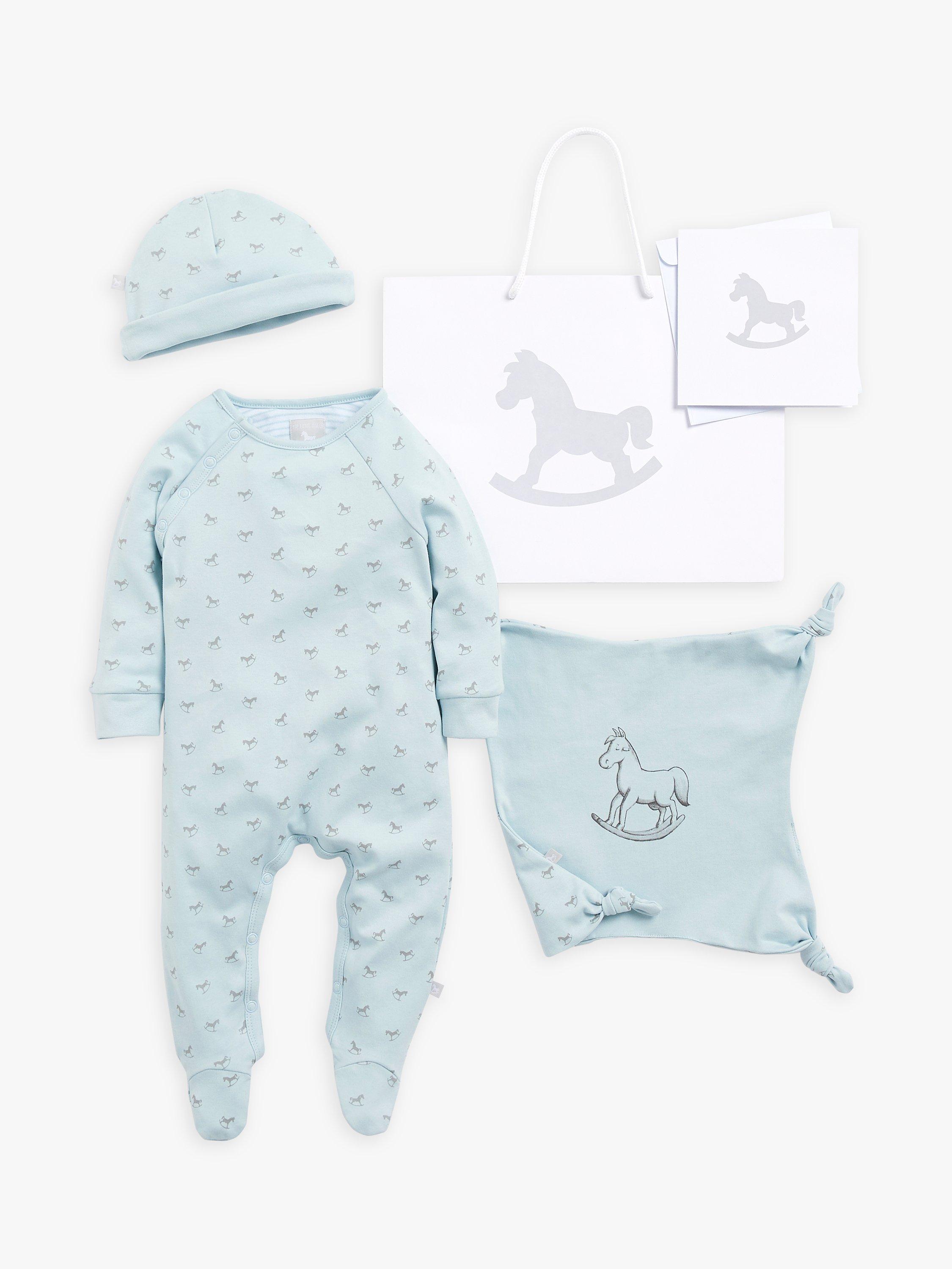 The perfect gift for little ones, this three-piece set from The Little Tailor includes a babygrow, hat and comforter. All made with supersoft cotton for ultimate comfort and finished with the brand's signature rocking horse design.