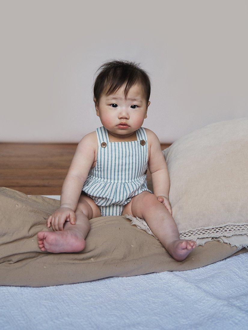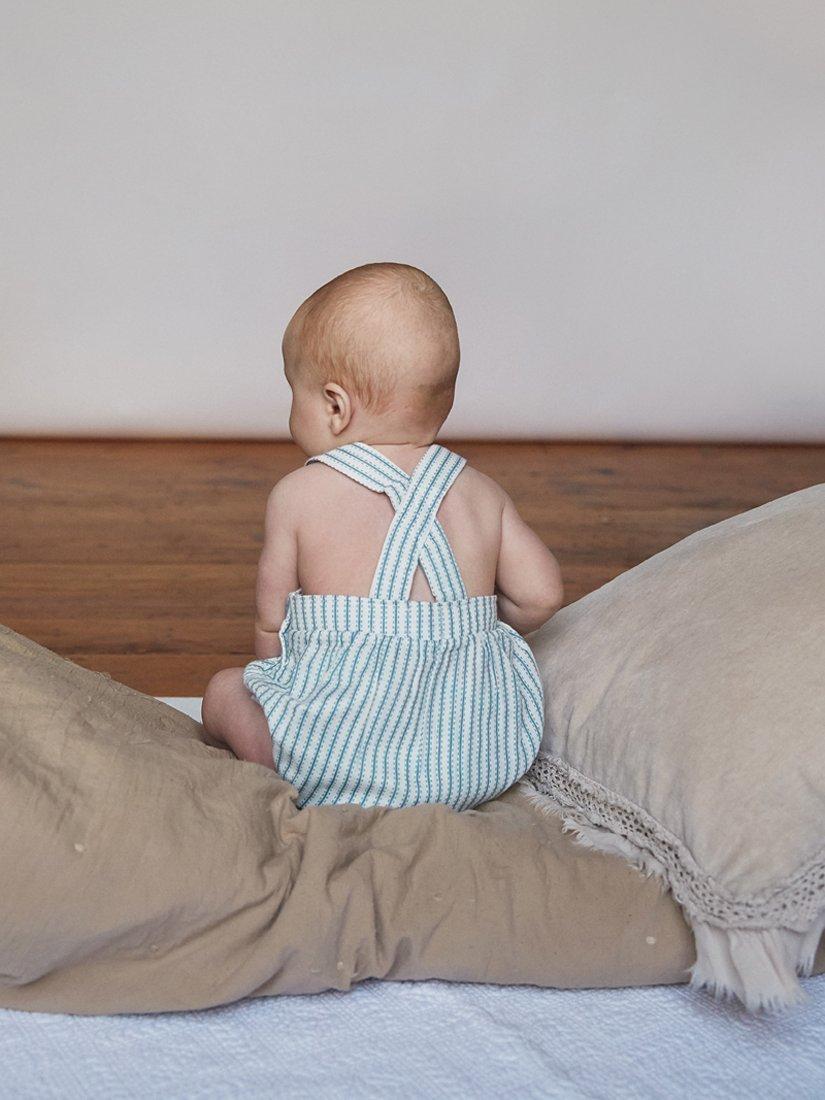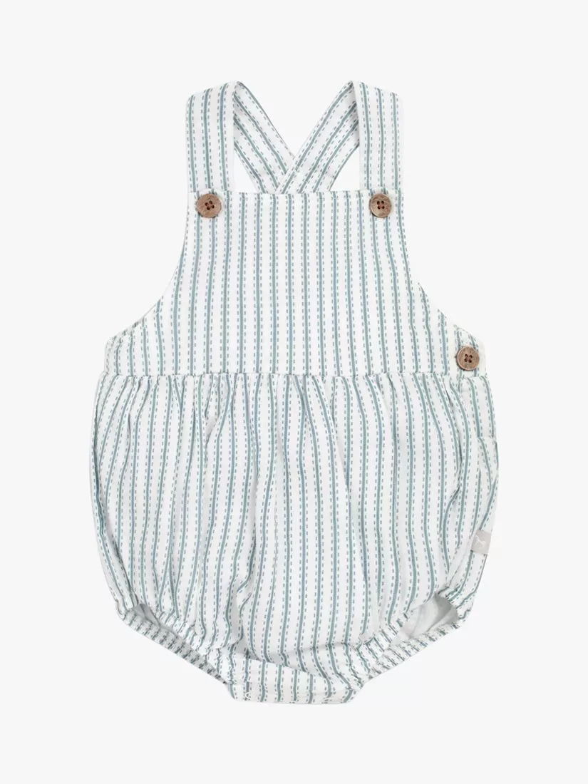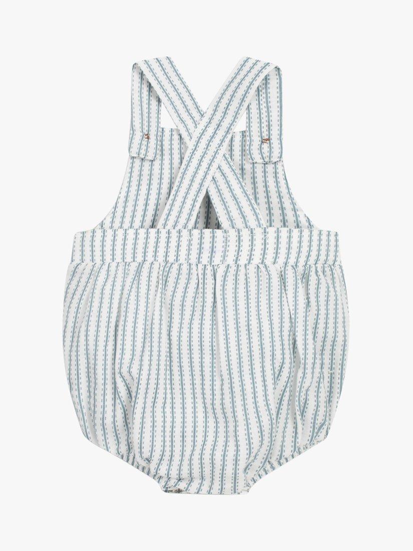 The Little TailorBaby Woven Shorty Dungarees, Blue Ticking Stripe, 0-3 months