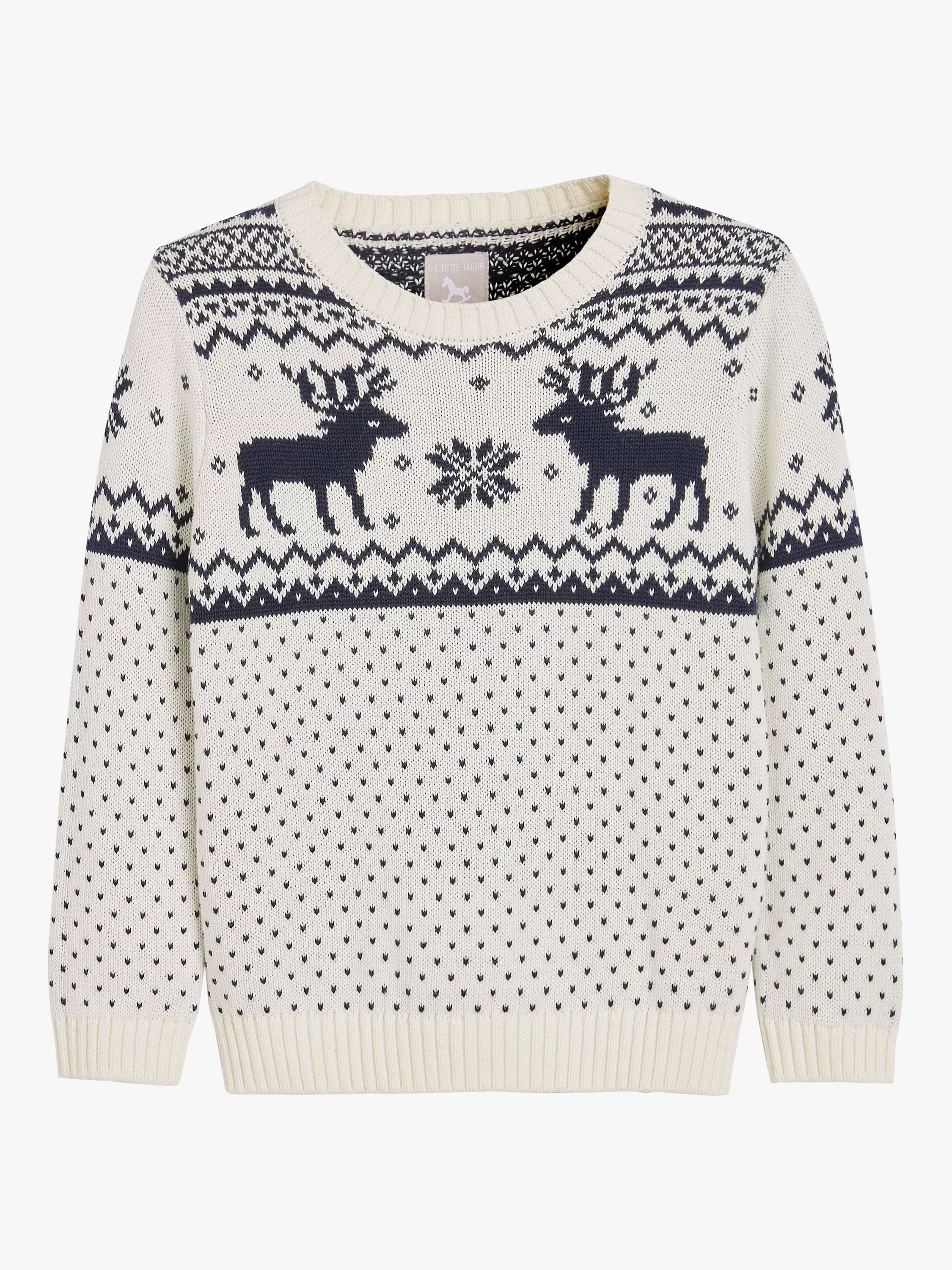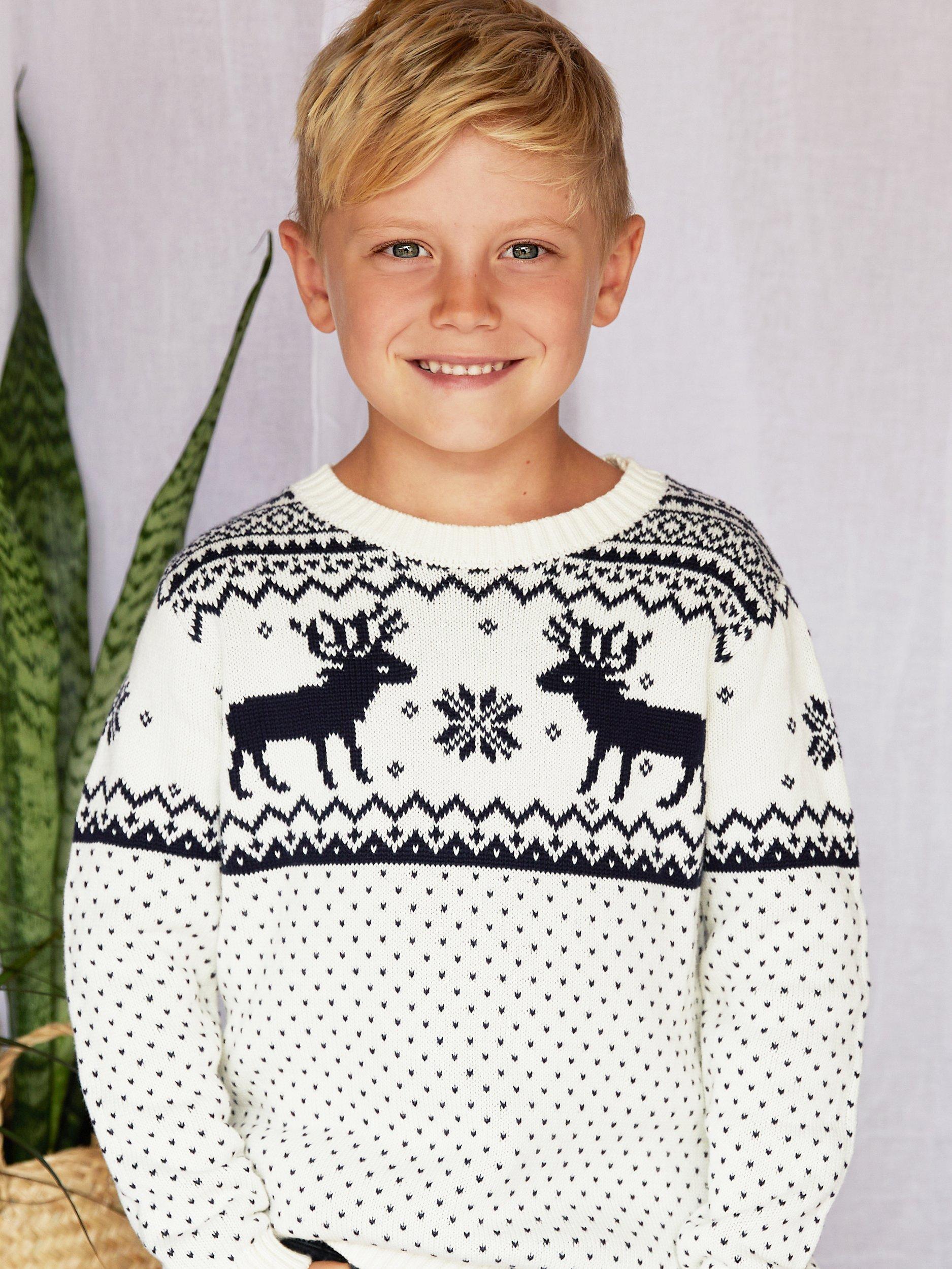 The perfect addition to any Christmas outfit, this cosy and comfortable cotton knit jumper from The Little Tailor comes in a timeless classic Fair Isle pattern that's sure to help spread the seasonal joy this year.