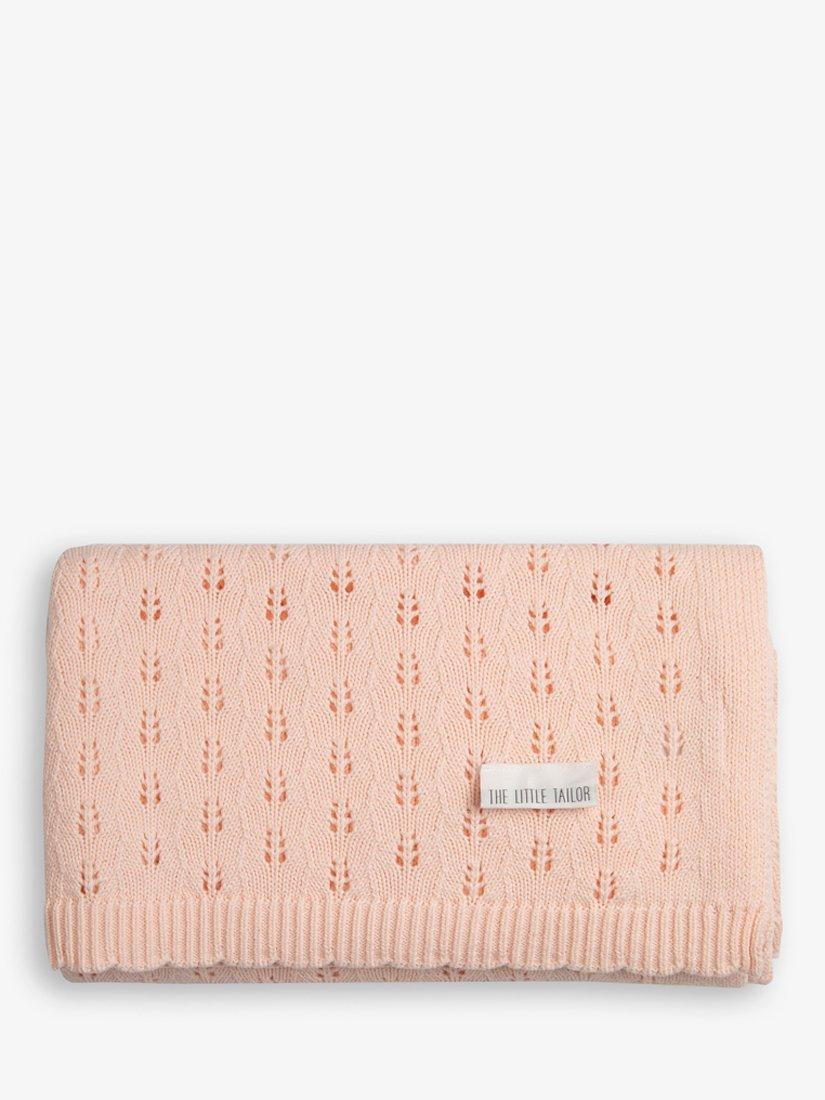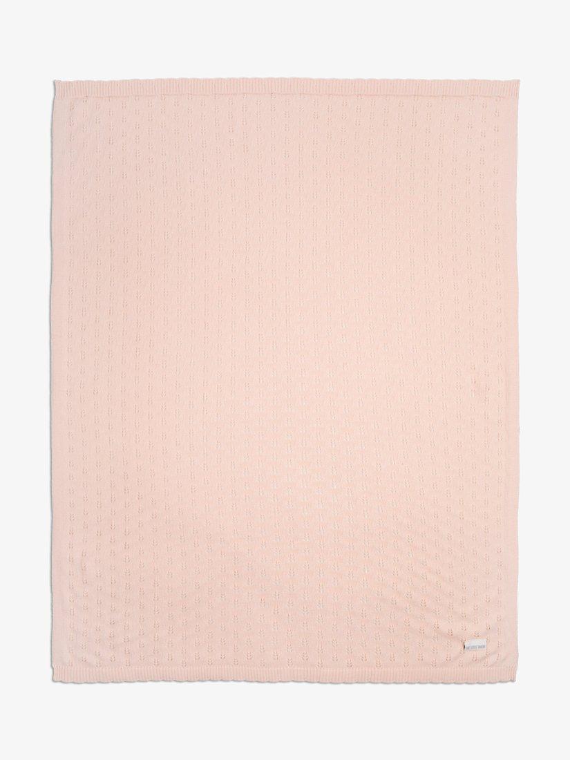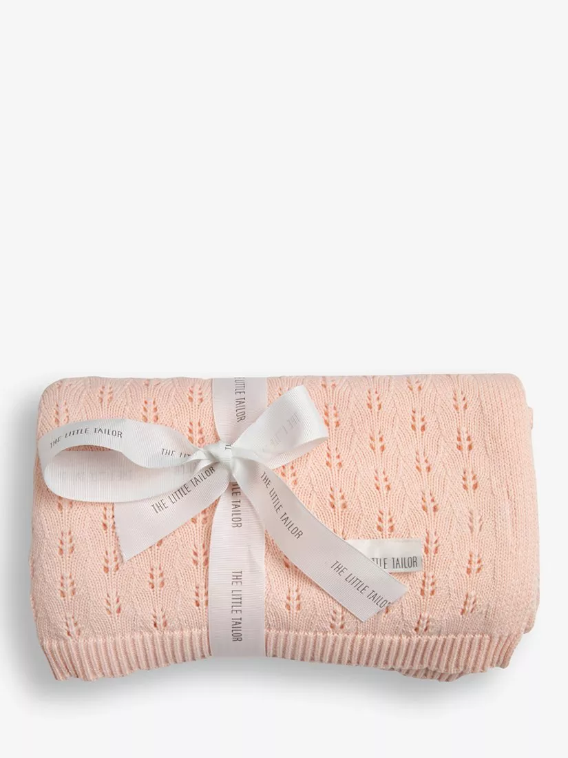 This baby blanket is made from 100% cotton yarn with pretty lace-look pointelle detailing. Wrapped in a ribbon, it makes an ideal gift.