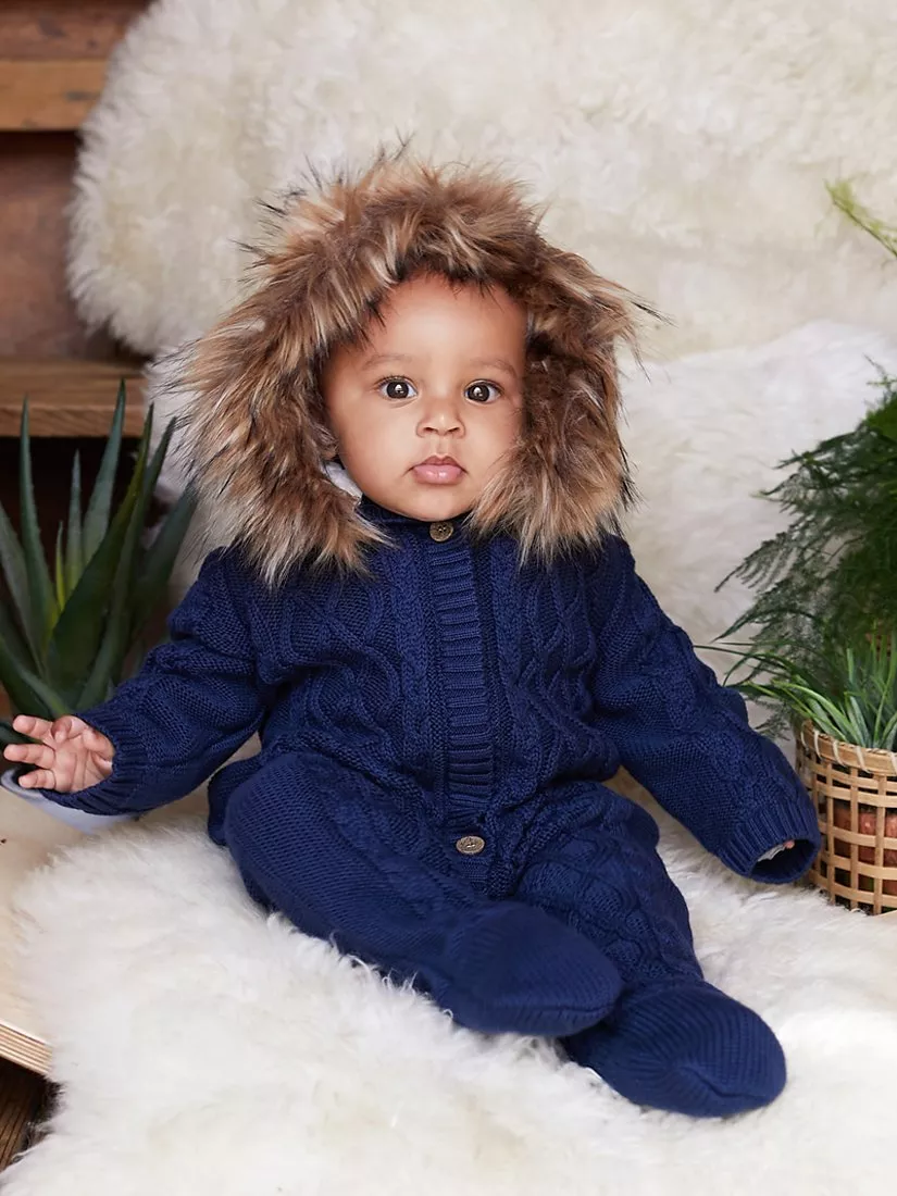 The Little TailorKids' Knitted Faux Fur Hood Romper, Navy