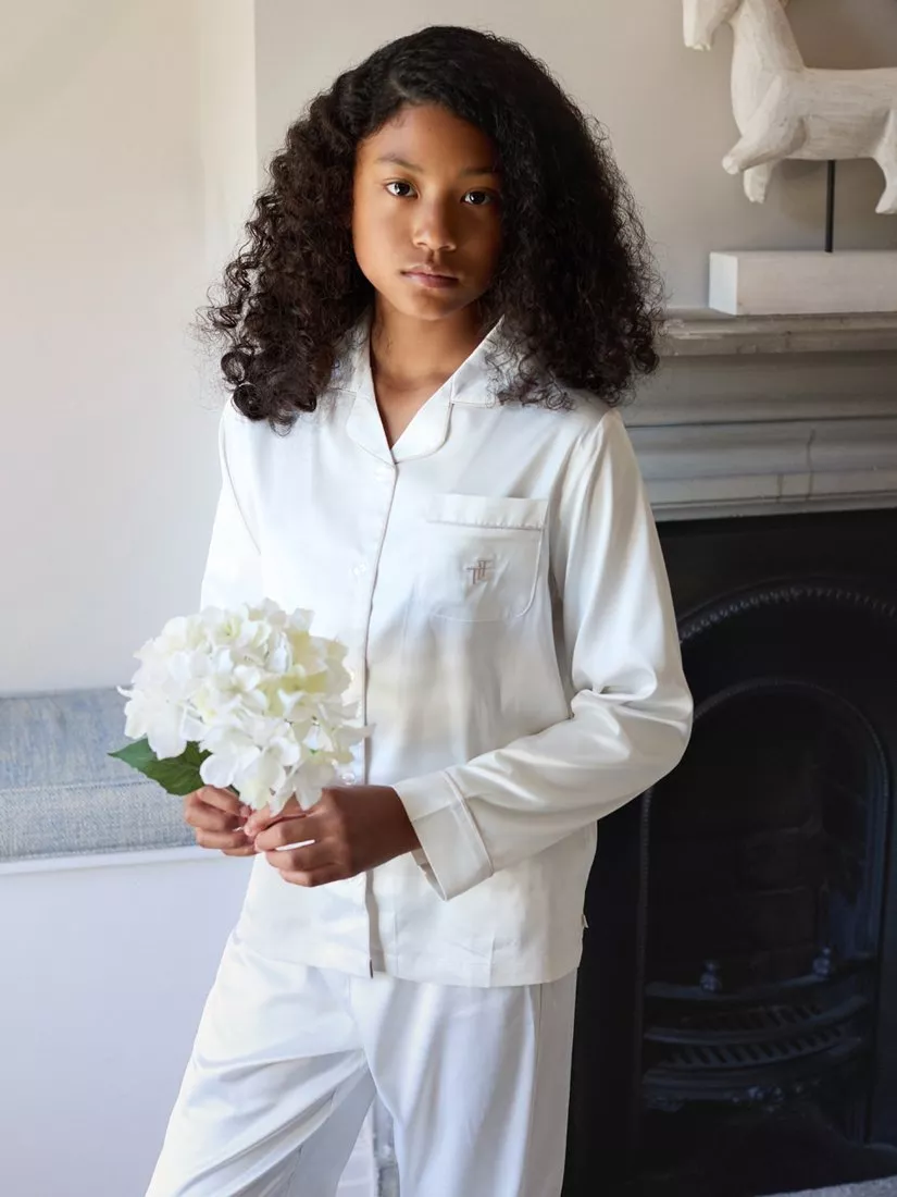 The Little TailorKids' Satin Pyjama Set, Cream