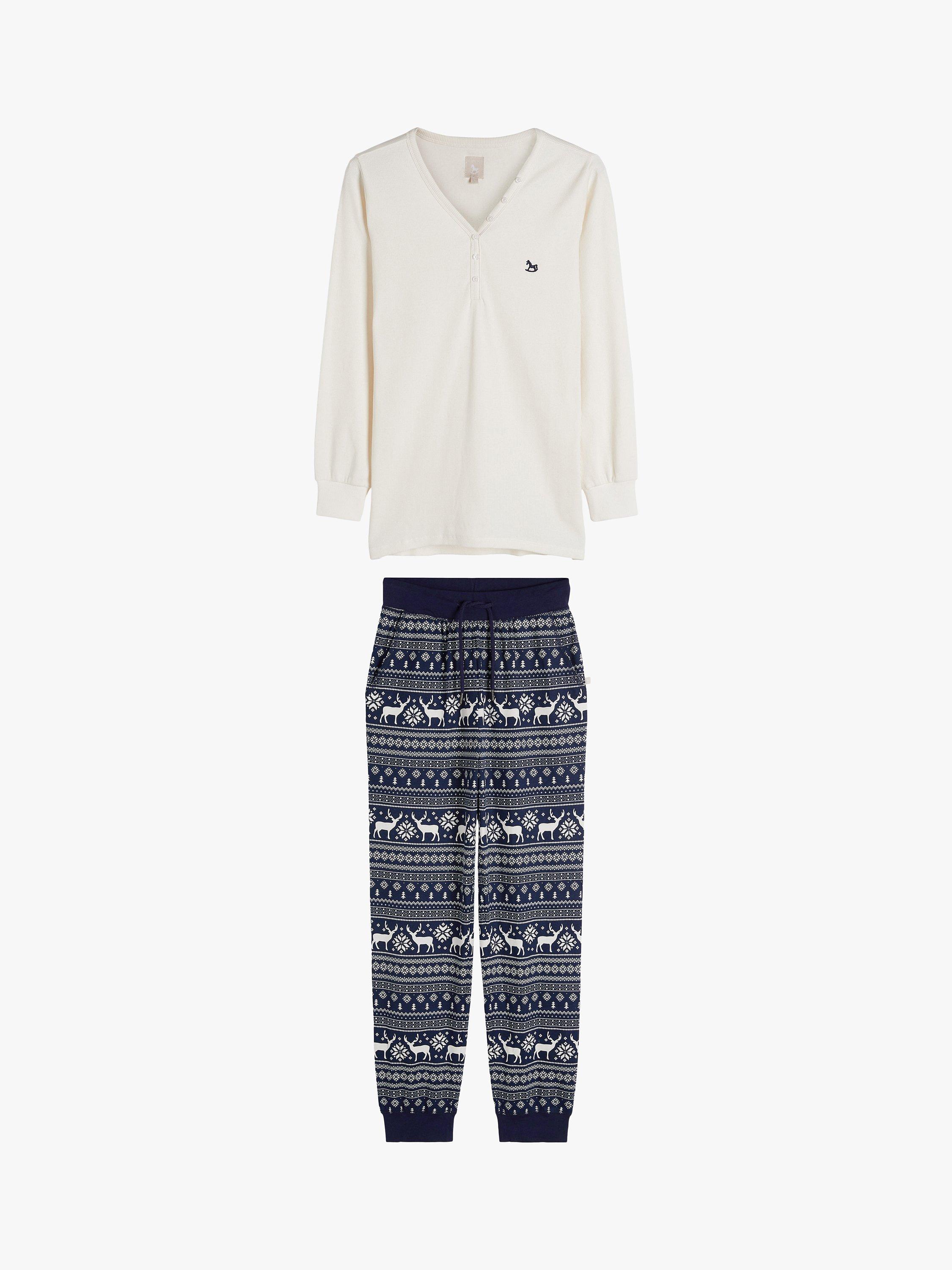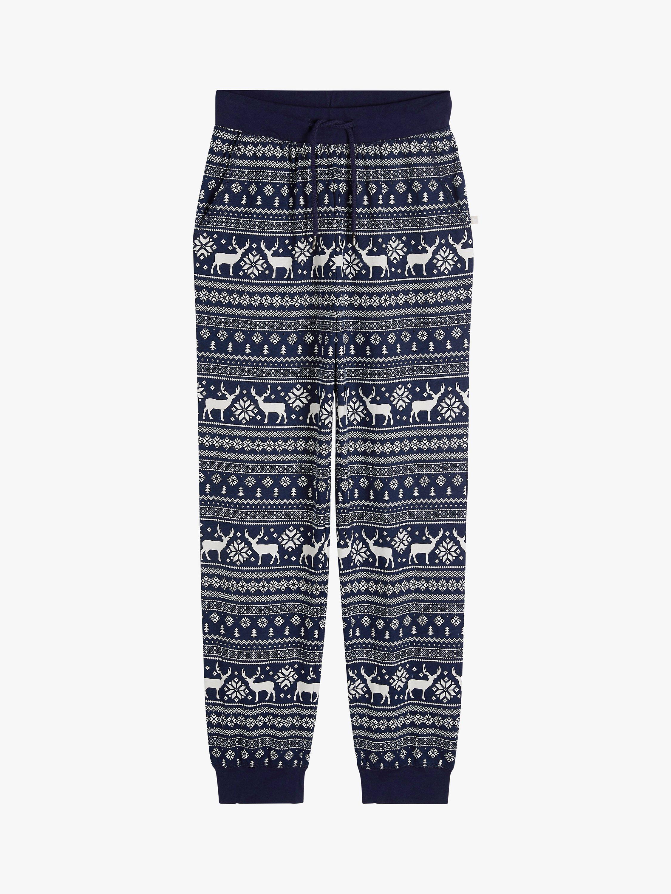 A snuggly winter pyjama set with a ribbed top and Fairisle printed jersey cotton pants, this set comes in matching styles for all the family.