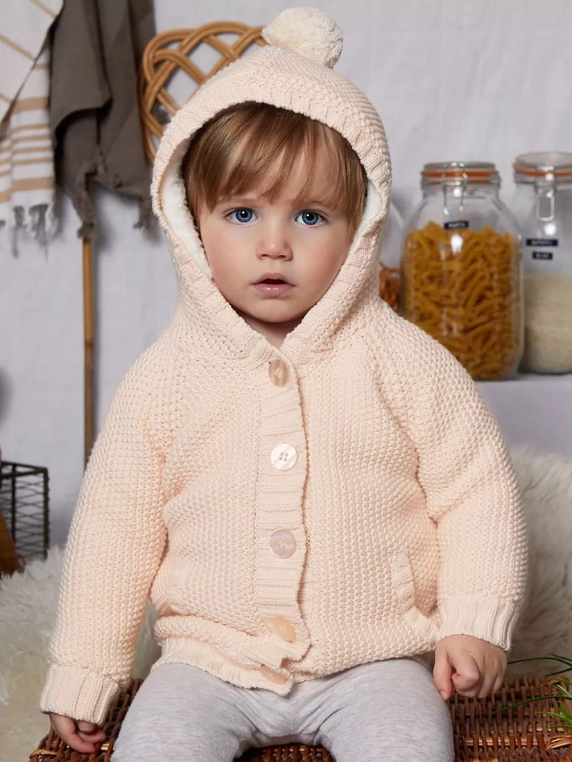 A Cosy layer with cute Pompom detailing, this coat from The Little Tailor is made with a pure cotton outer and with a super-soft plush lining. Finished with button fastening at the front, this one's machine washable for easy care.