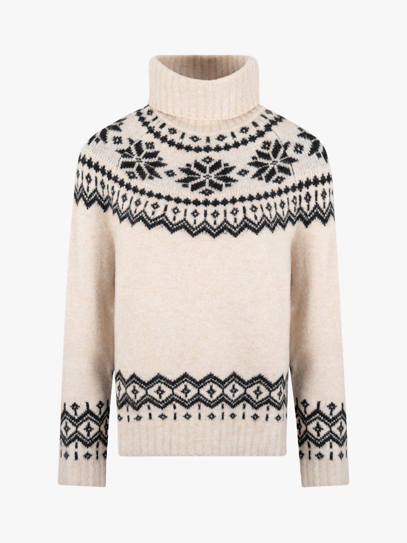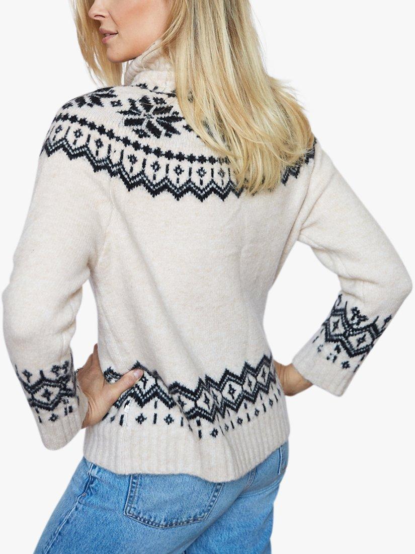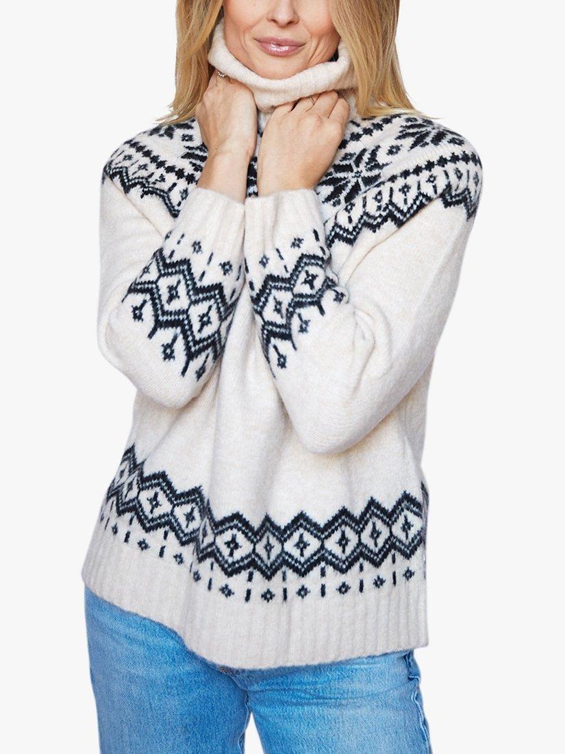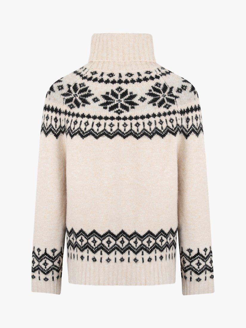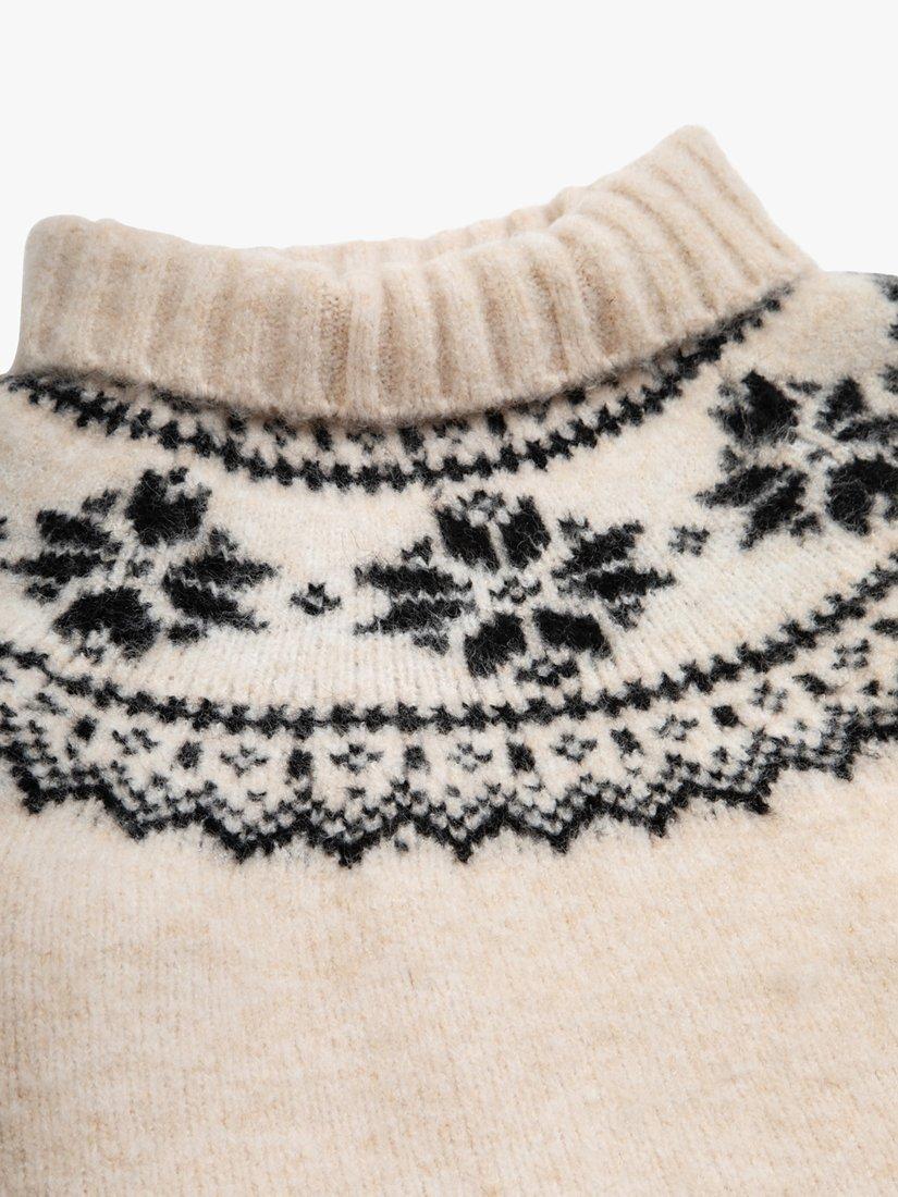 Perfect for keeping warm on those colder days, this chunky jumper from The Little Tailor is knitted in a super soft yarn with funnel neck and timeless snowflake fairisle design.