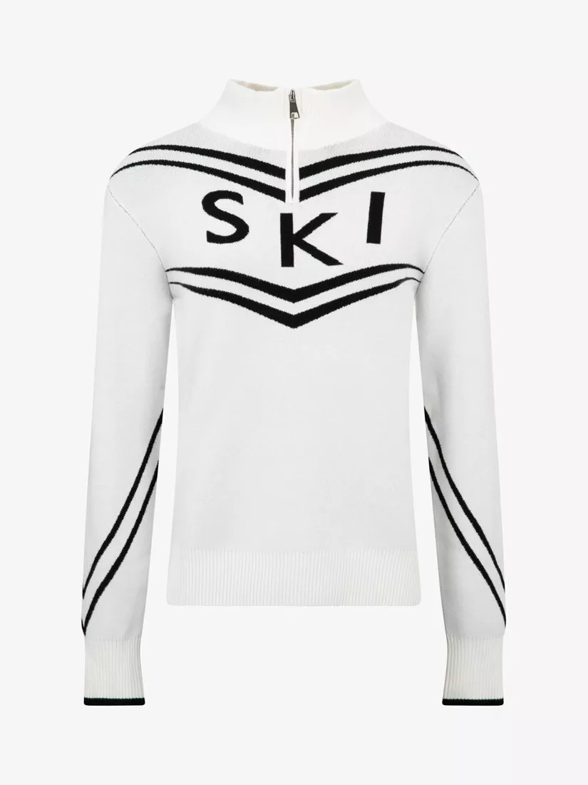 Slim fitting jumper with zip neck, made with a heavy weighed fabric for extra warmth. Bold and stylish 'Ski' text detail on the front and chevron design detail features on front and arms to give a sporty feel. The perfect look for on the slopes. Matching family items available.