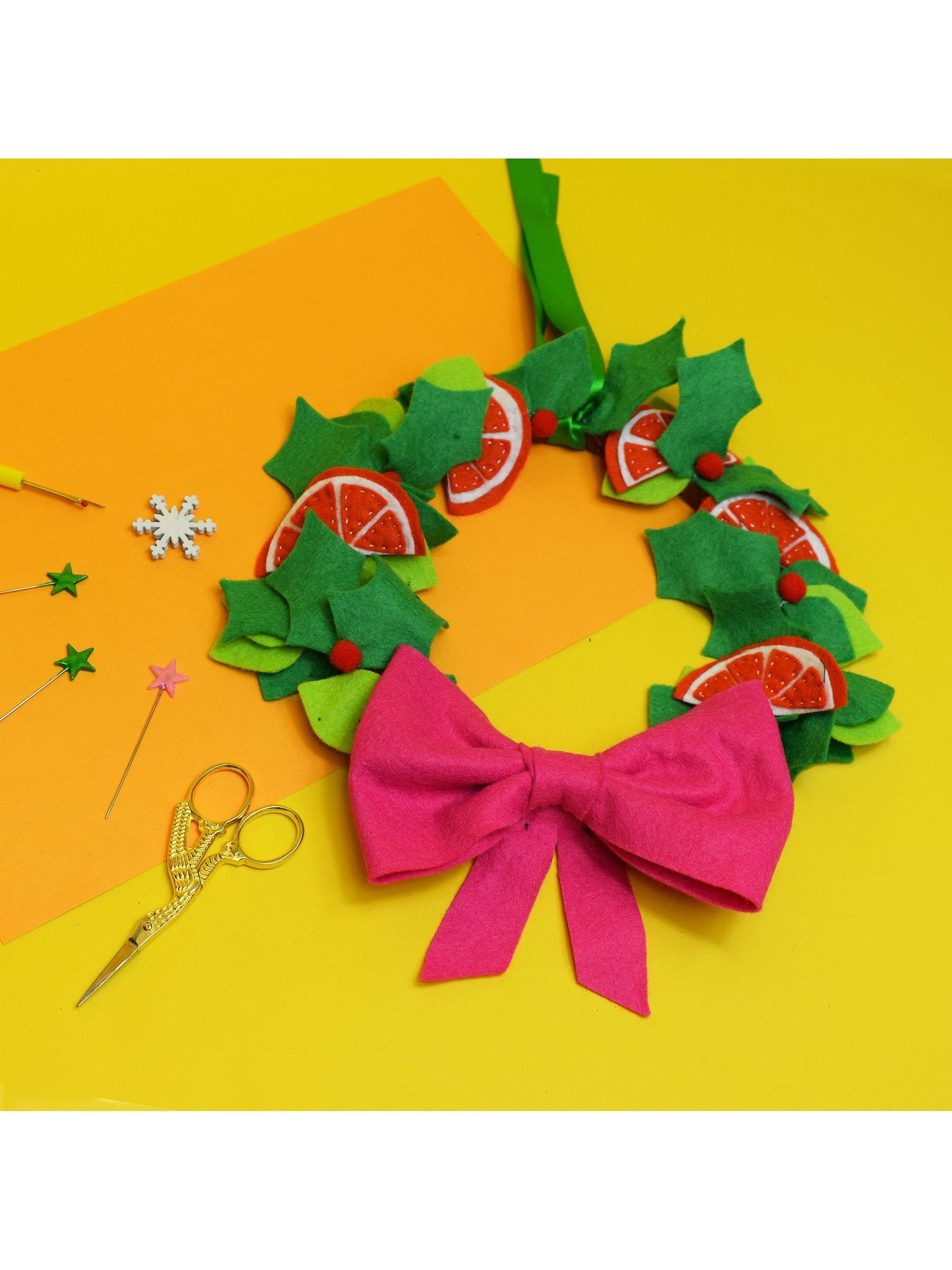 Make a festive holly wreath with this foliage-filled felt craft kit.