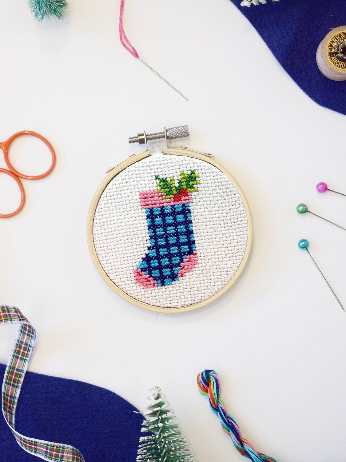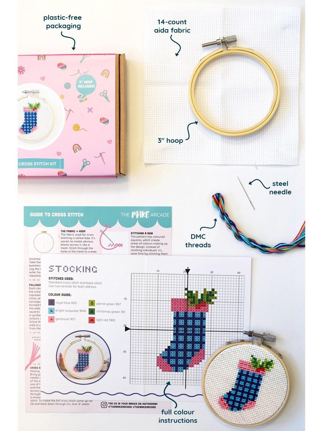 The Make ArcadeGingham Stocking Mini Cross Stitch Kit