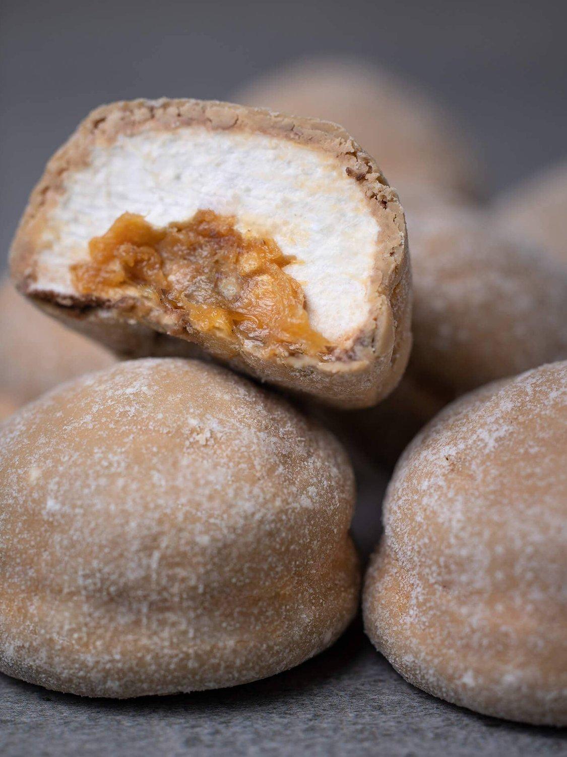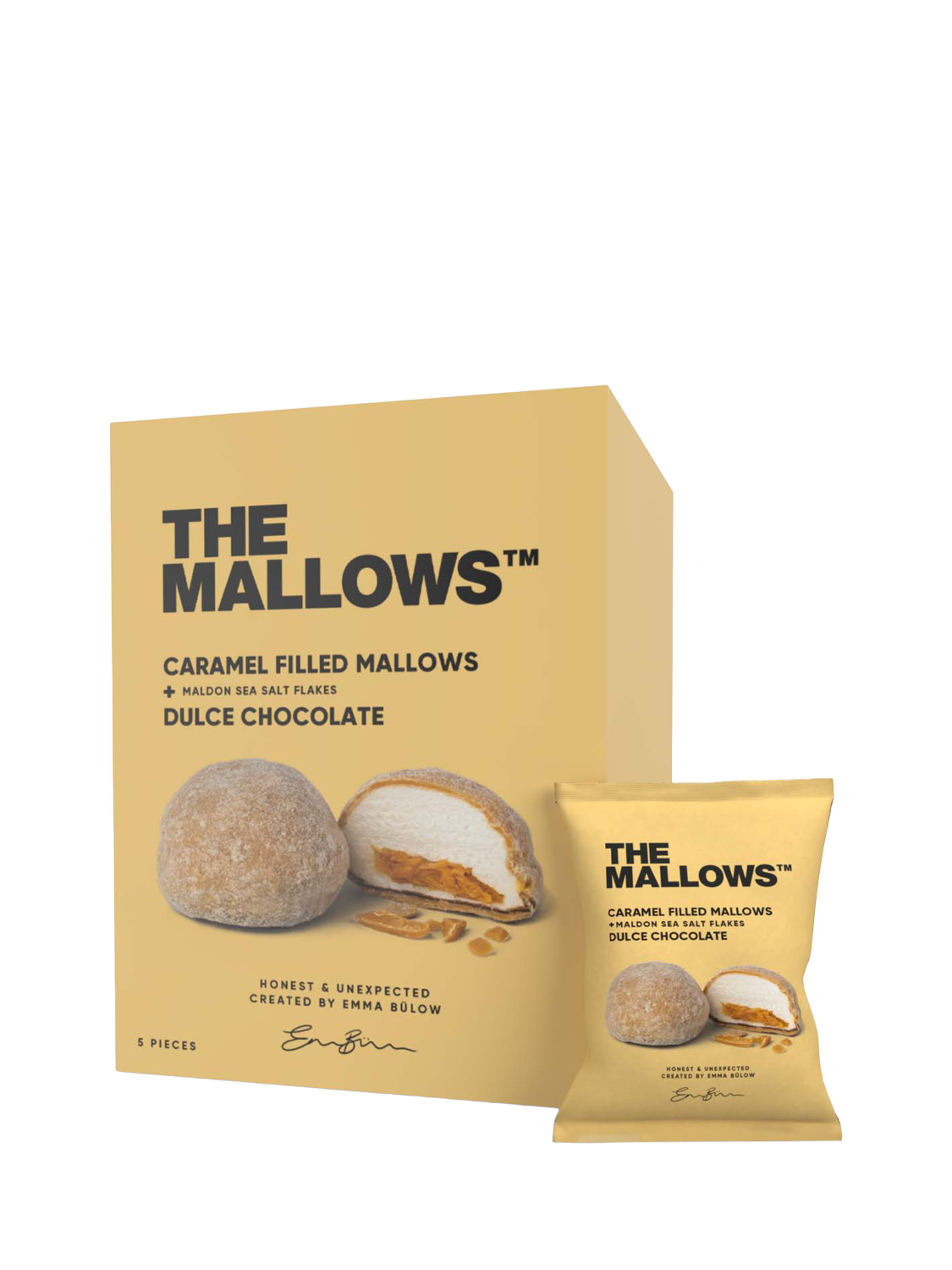 Dulce Chocolate and Maldon Sea Salt Flake marshmallows are filled with caramel and coated with rich, caramelised white chocolate - also known as the popular dulce chocolate. The soft center melts together with the vanilla marshmallow and the crunchy pieces of sea salt upon the first bite, perfectly complementing the sweet dulce chocolate.