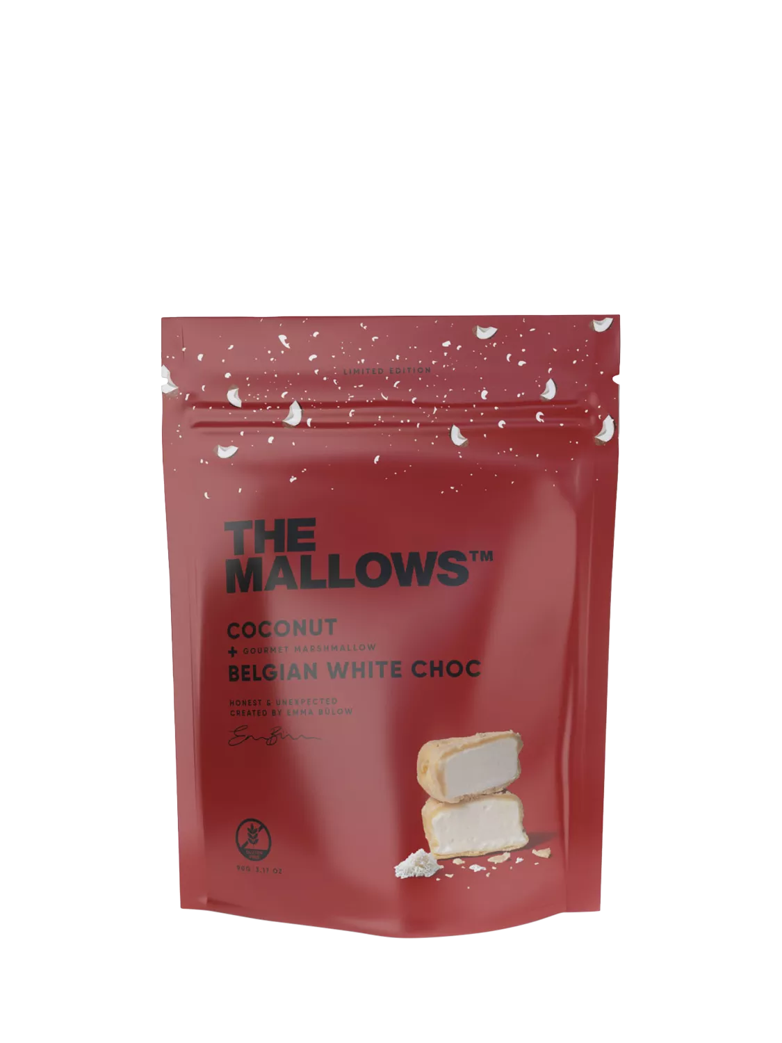 Gourmet vanilla marshmallows coated with Belgian white chocolate and crispy coconut flakes. A delightful flavour combination for those who love coconut.