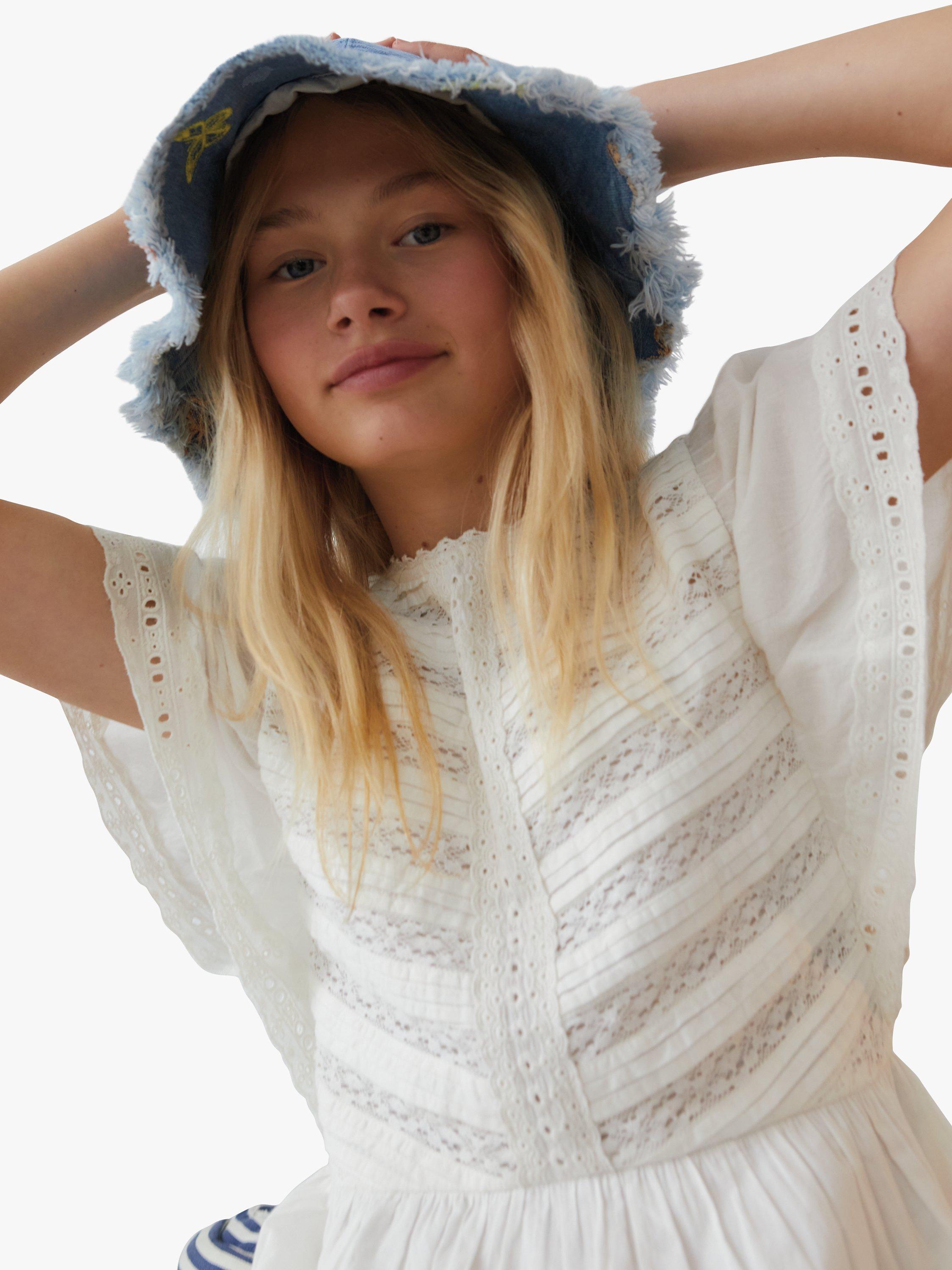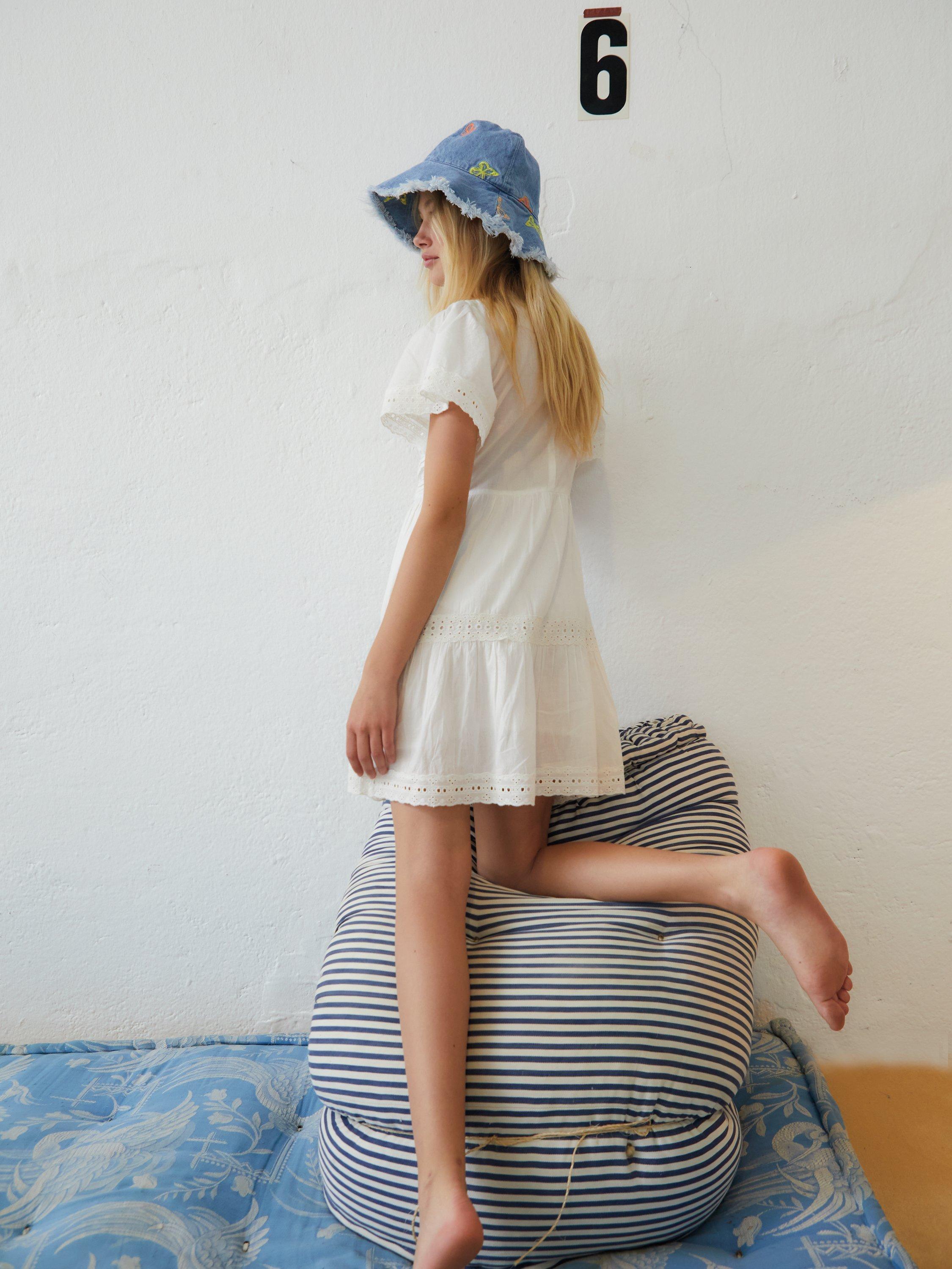 Accented with lacy details through the bodice, sleeves and skirt, this short sleeve fit and flare dress by The New Society is comfortable enough to wear from morning to night thanks to its pure cotton composition.
