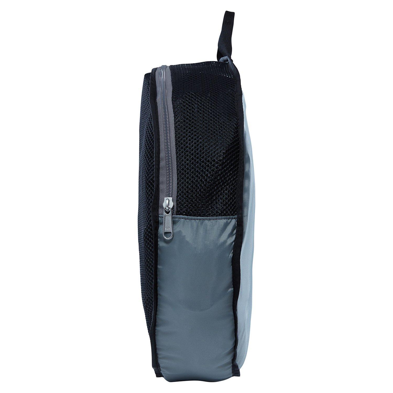 - Main compartment has a zippered mesh pocket and an added end-cap mesh sleeve pocket