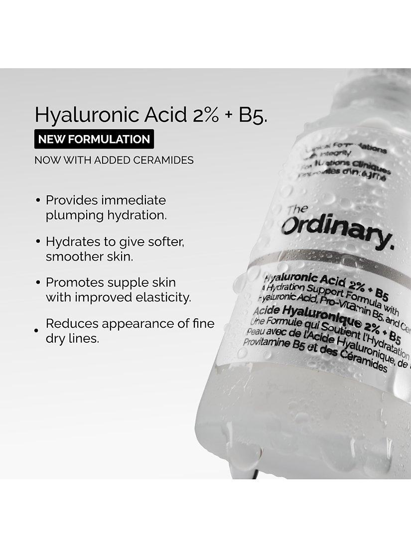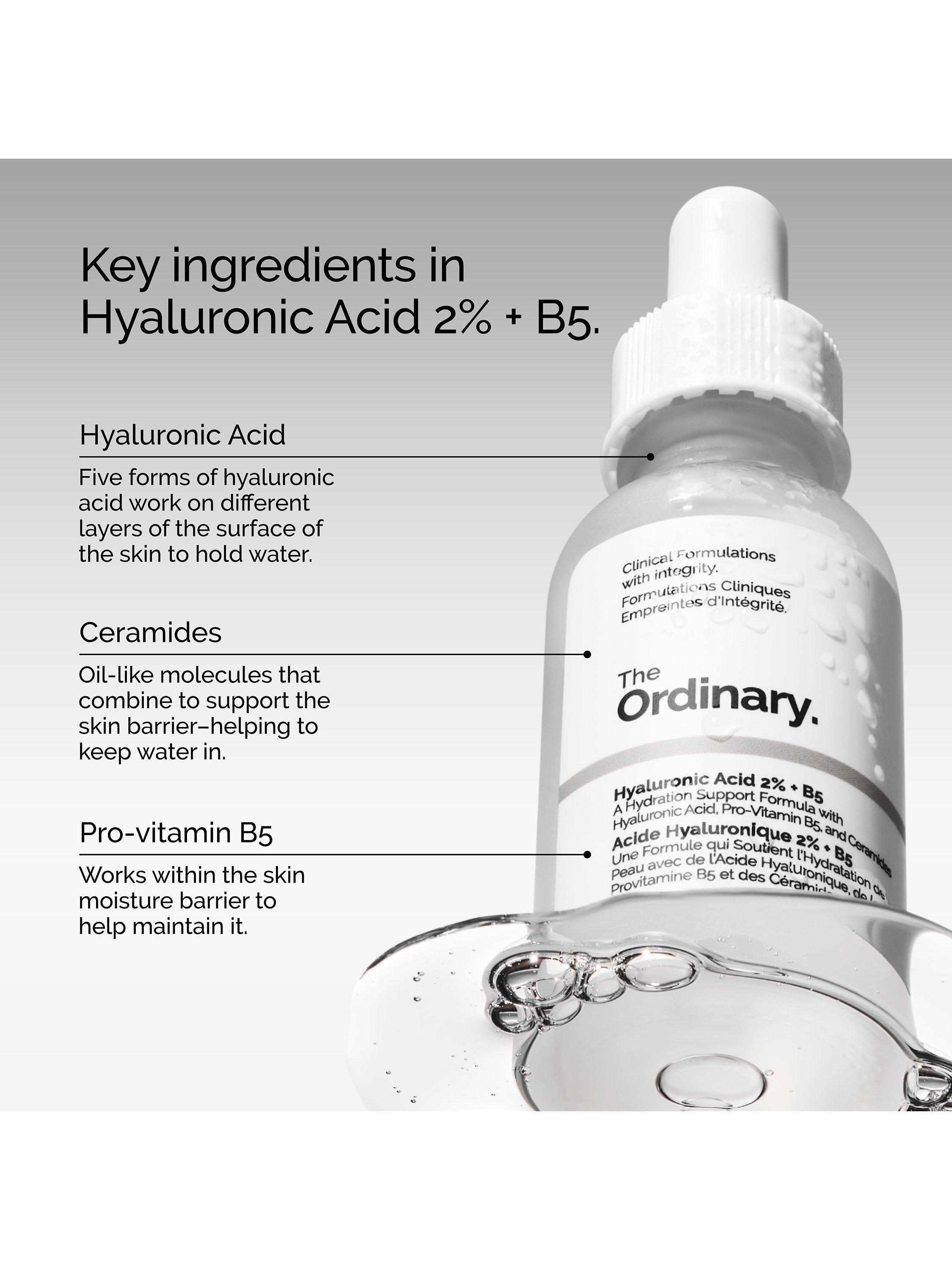 Hyaluronic Acid 2% + B5 provides instant plumping hydration to give softer, smoother, healthy-looking skin. The lightweight formula replenishes the skin’s hydration levels with all-day results and helps the skin retain moisture to re-plump dry, dehydrated skin. Hyaluronic Acid 2% + B5 also promotes skin suppleness and elasticity, while minimising the appearance of fine dry lines.