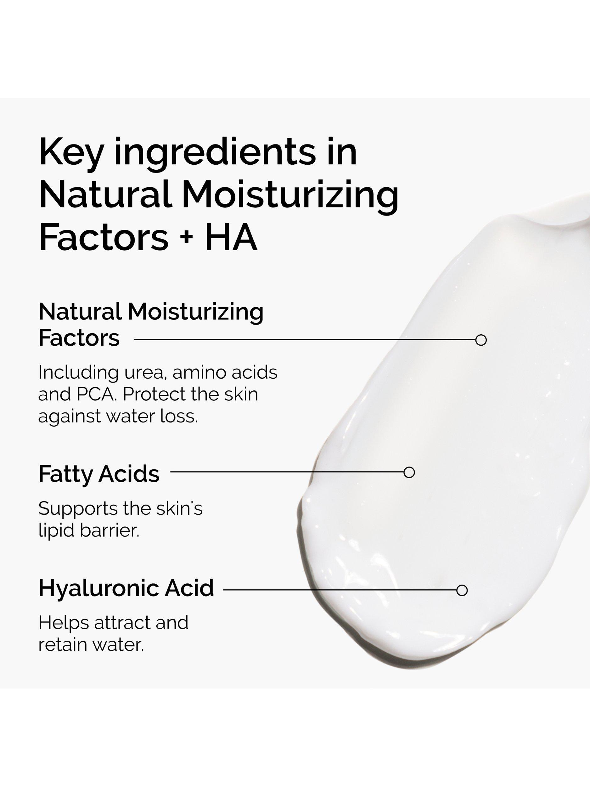 Natural Moisturising Factors + HA is a daily moisturiser, suitable for all skin types, that strengthens the skin’s barrier whilst providing immediate and all-day hydration.