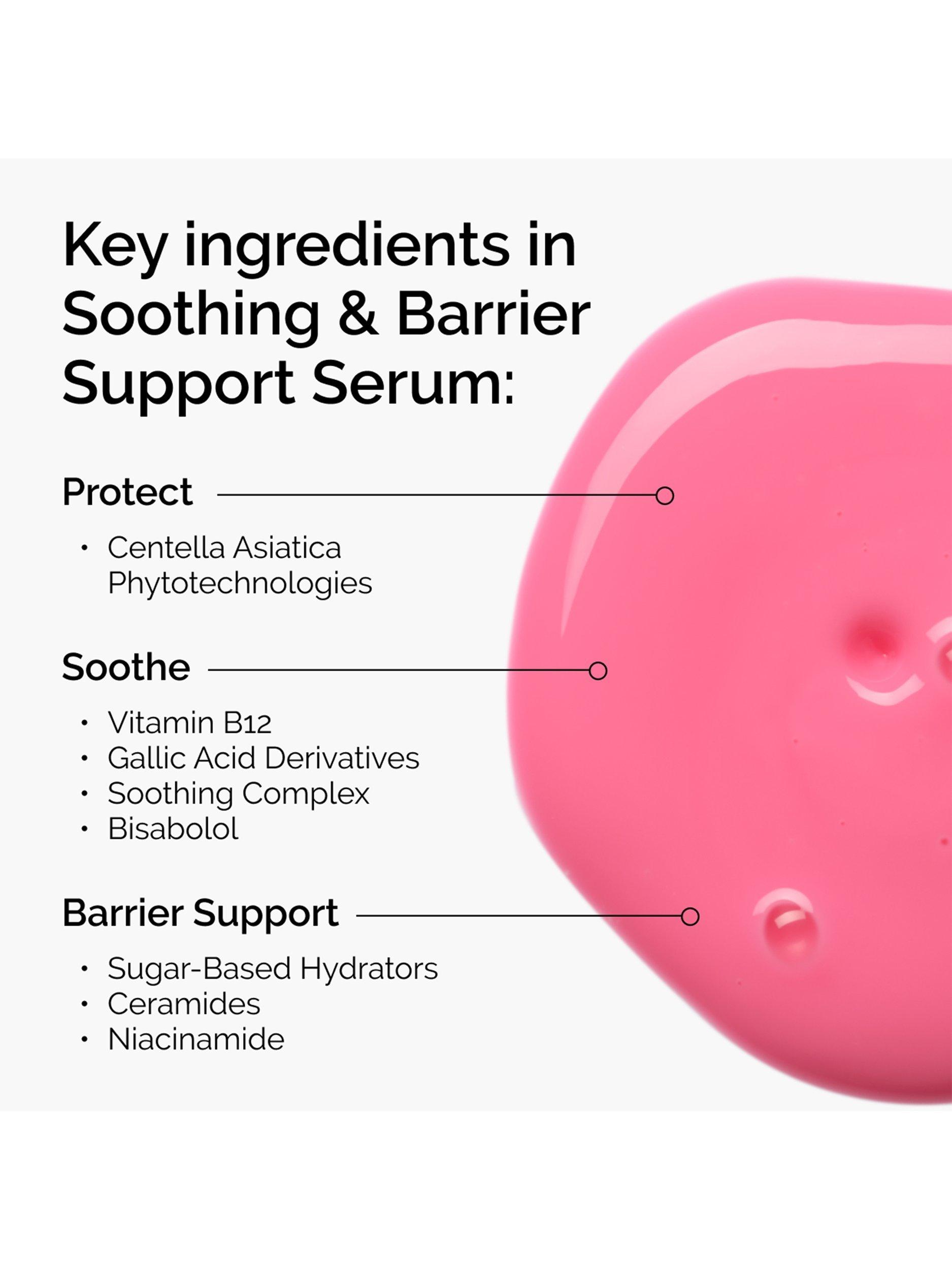 Soothing & Barrier Support Serum is a multi-active solution targeted at reducing the look of irritated skin. It helps recover the skin barrier in 2 hours*, and provides an immediate 86%** boost in skin hydration. This helps soothe feelings of discomfort and reduce signs of redness over time.
