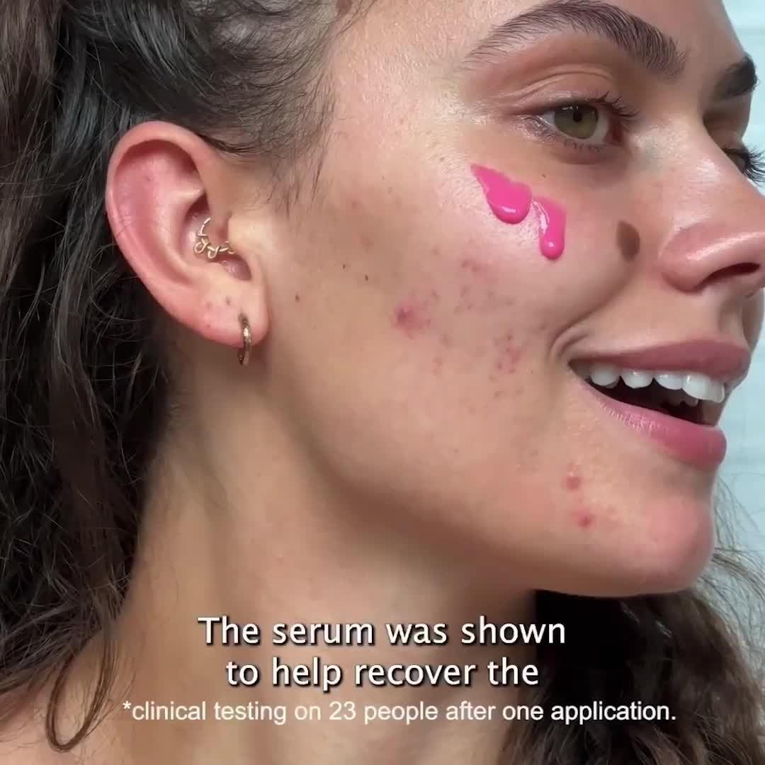 - Vitamin B12: Helps support skin barrier by reducing dryness and the look of redness, while also imparting the serum’s characteristic pink hue