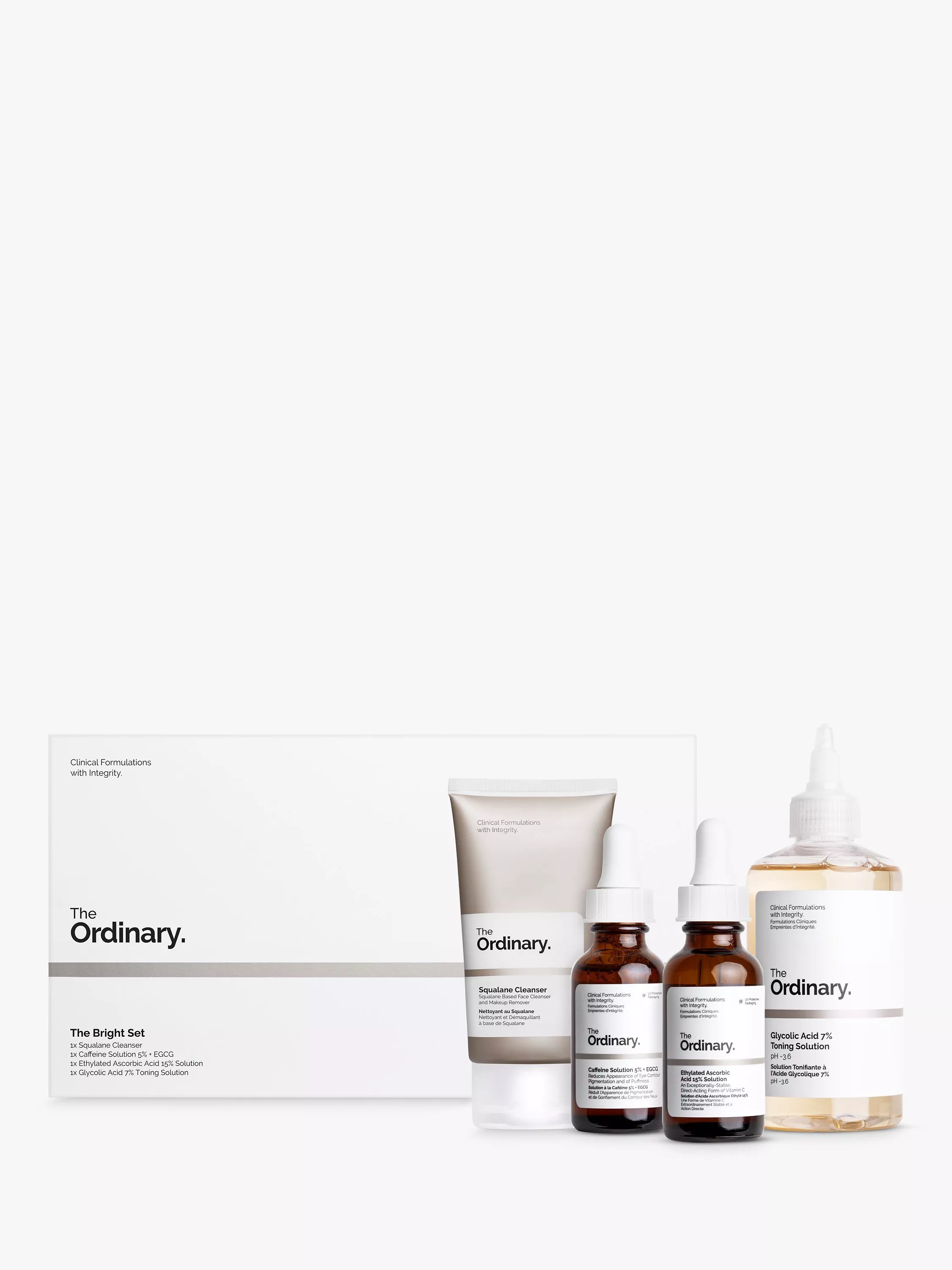 - Squalane Cleanser -Squalane, Aqua (Water), Coco-Caprylate/Caprate, Glycerin, Sucrose Stearate, Ethyl Macadamiate, Caprylic/Capric Triglyceride, Sucrose Laurate, Hydrogenated Starch Hydrolysate, Sucrose Dilaurate, Sucrose Trilaurate, Polyacrylate Crosspolymer-6, Isoceteth-20, Sodium Polyacrylate, Tocopherol, Hydroxymethoxyphenyl Decanone, Trisodium Ethylenediamine Disuccinate, Malic Acid, Ethylhexylglycerin, Chlorphenesin.Ethylated Ascorbic Acid 15% Solution - Propanediol, Ethyl Ascorbic Acid.Caffeine Solution 5% + EGCG - Aqua (Water), Caffeine, Maltodextrin, Glycerin, Propanediol, Epigallocatechin Gallatyl Glucoside, Gallyl Glucoside, Hyaluronic Acid, Oxidized Glutathione, Melanin, Glycine Soja (Soybean) Seed Extract, Urea, Pentylene Glycol, Hydroxyethylcellulose, Polyacrylate Crosspolymer-6, Xanthan gum, Lactic Acid, Dehydroacetic Acid, Trisodium Ethylenediamine Disuccinate, Propyl Gallate, Dimethyl Isosorbide, Benzyl Alcohol, 1,2-Hexanediol, Ethylhexylglycerin, Phenoxyethanol, Caprylyl Glycol.Glycolic Acid 7% Toning Solution - Aqua (Water), Glycolic Acid, Rosa damascena flower water, Centaurea cyanus flower water, Aloe Barbadensis Leaf Water, Propanediol, Glycerin, Triethanolamine, Aminomethyl Propanol, Panax Ginseng Root Extract, Tasmannia Lanceolata Fruit/Leaf Extract, Aspartic Acid, Alanine, Glycine, Serine, Valine, Isoleucine, Proline, Threonine, Histidine, Phenylalanine, Glutamic Acid, Arginine, PCA, Sodium PCA, Sodium Lactate, Fructose, Glucose, Sucrose, Urea, Hexyl Nicotinate, Dextrin, Citric Acid, Polysorbate 20, Gellan Gum, Trisodium Ethylenediamine Disuccinate, Sodium Chloride, Hexylene Glycol, Potassium Sorbate, Sodium Benzoate, 1,2-Hexanediol, Caprylyl Glycol.