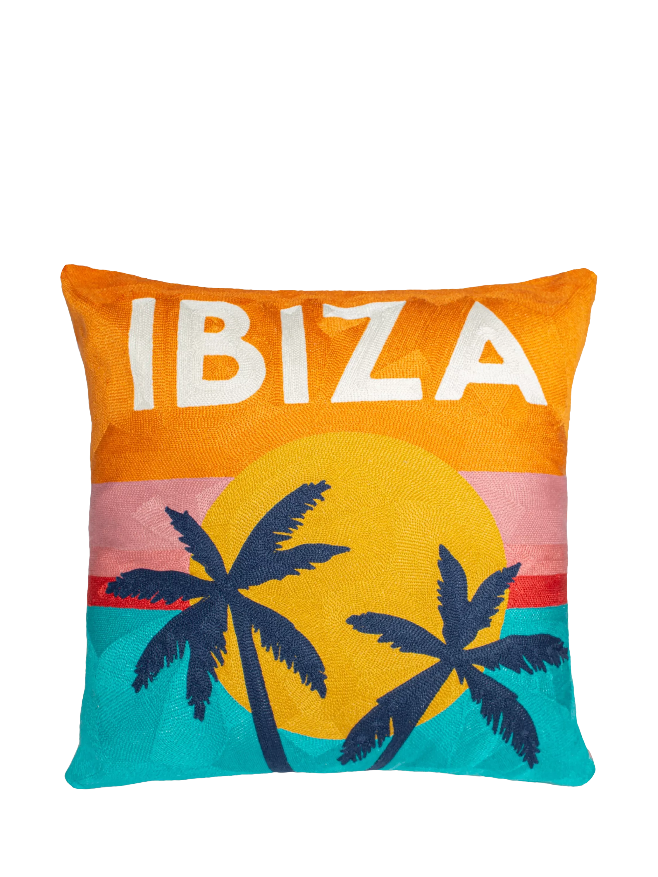 Vibrant, colourful and fun. Featuring all the colours and energy from Ibiza, this design has a luxury pink velvet back and would be a great addition to any sofa.