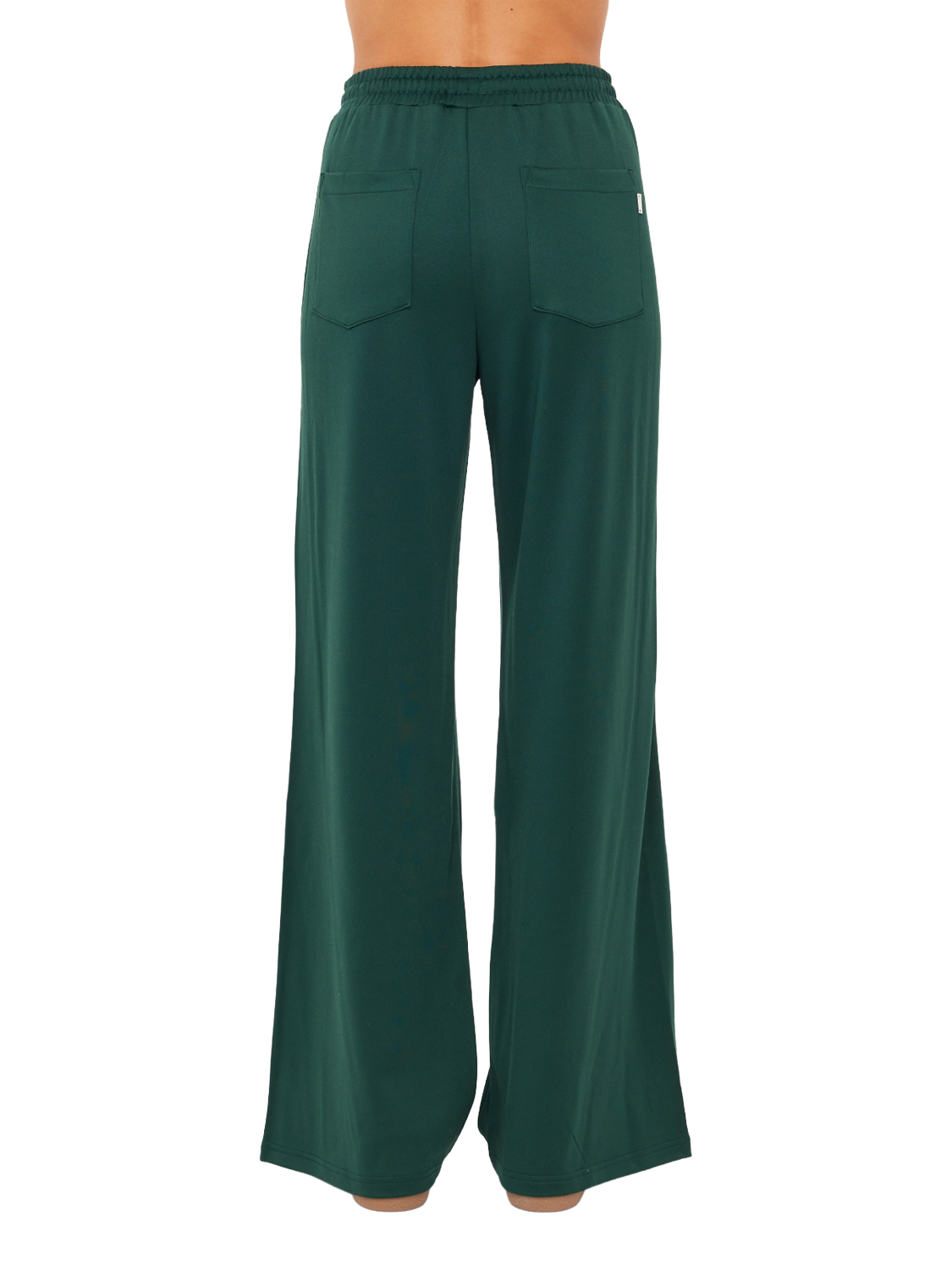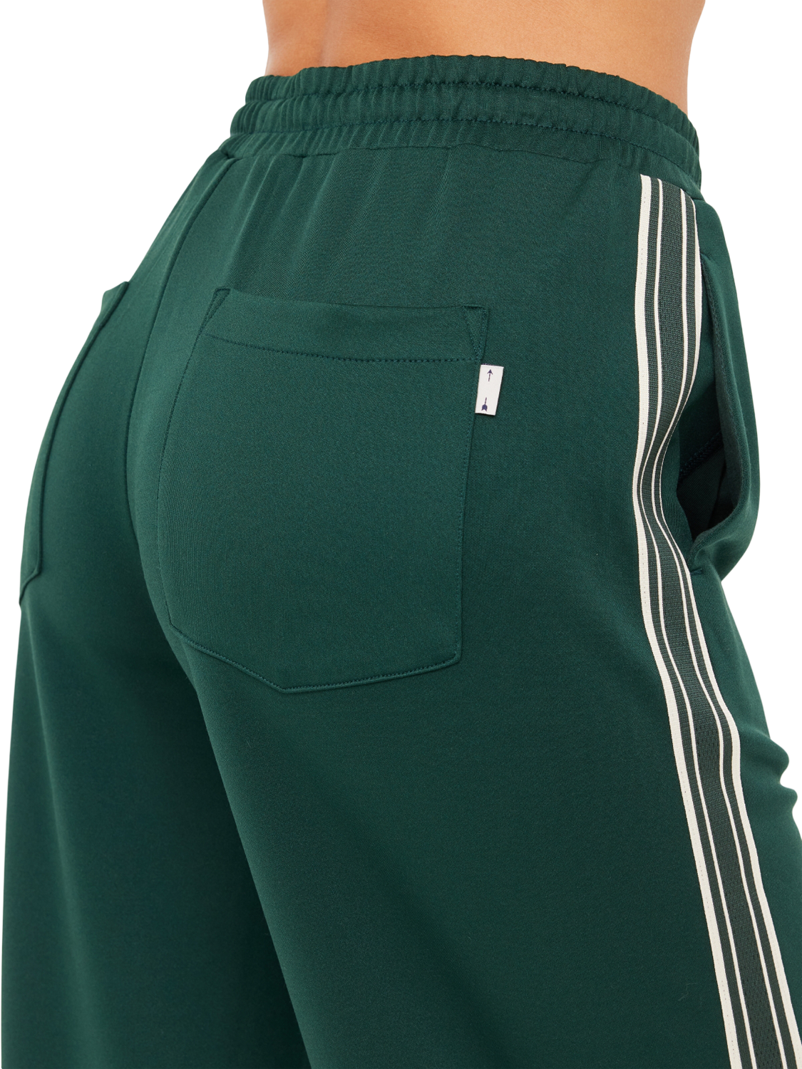 High-waisted trousers made from double-faced single jersey fabric with a contrast tape along the side seams. Featuring an elasticated waistband with drawcords and coated metal aglets. Finished with side seam pockets and back pockets with a logo pip.