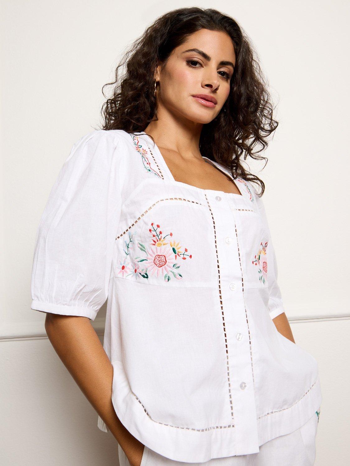 Their NibsEmbroidered Button Down Short Pyjama Set, White