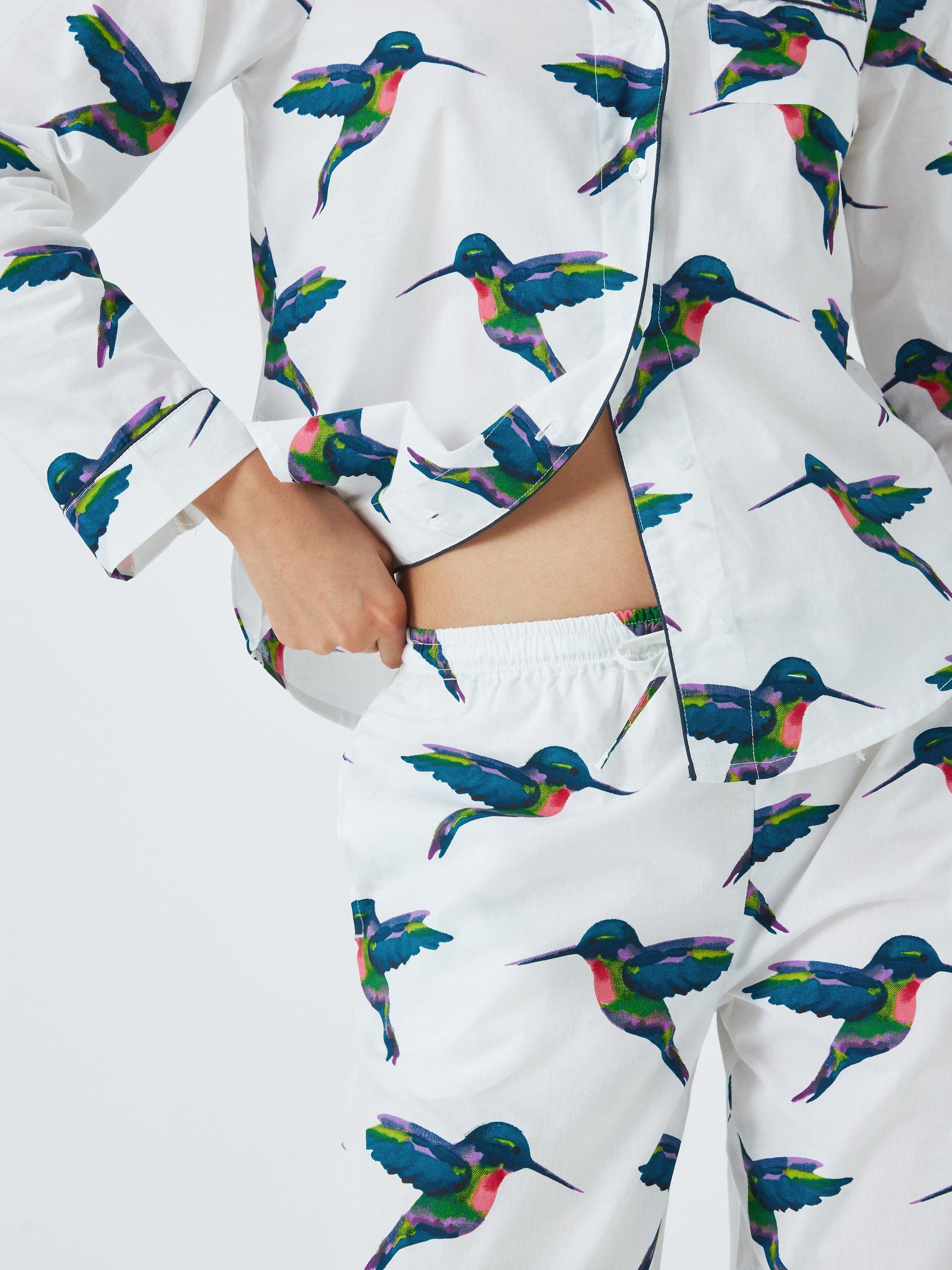 Perfect for early nights and long lie-ins, these cotton pyjamas with a fresh base allow the pretty hand-drawn hummingbirds to shine. The cotton is also very durable, washing well to make the pyjamas softer and softer over time. A comfortable and generous take on a classic design allowing for free movement and the essential addition of pockets.