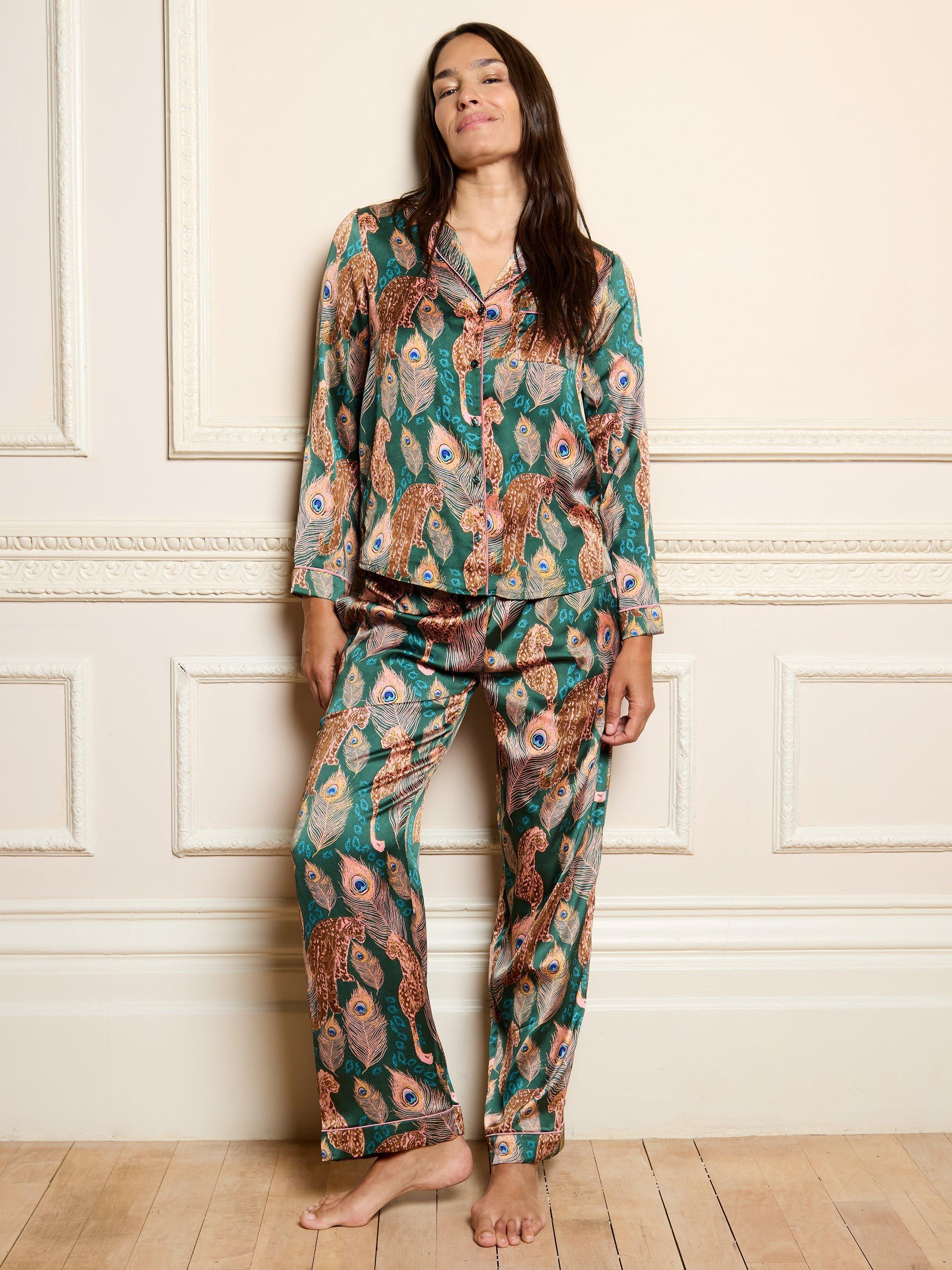 Their NibsLeopard Peacock Long Pyjama Set, Green
