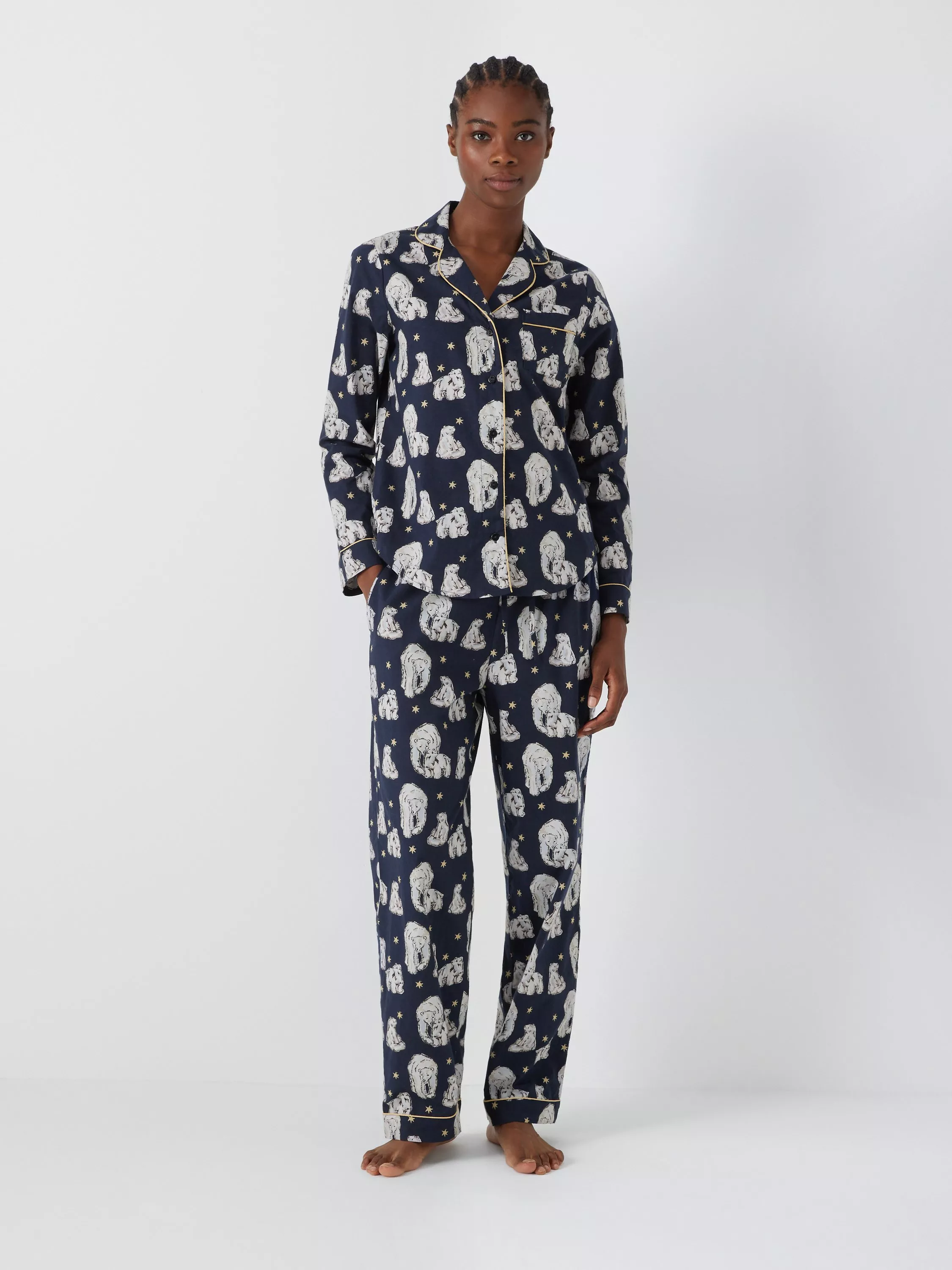With a polar bear print, this long-sleeve pyjama set by Their Nibs has a long length and is cut from pure cotton keeping you cool and comfortable.