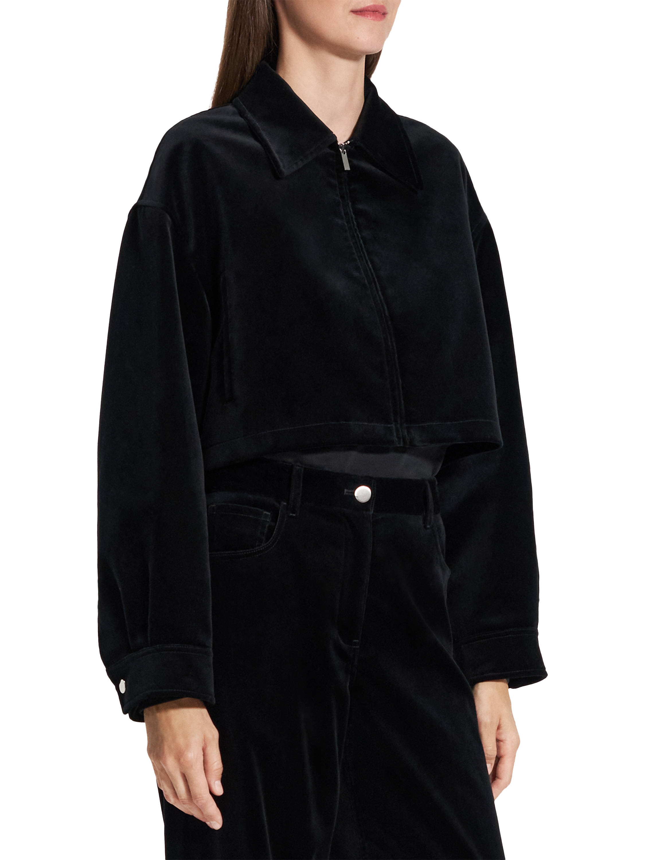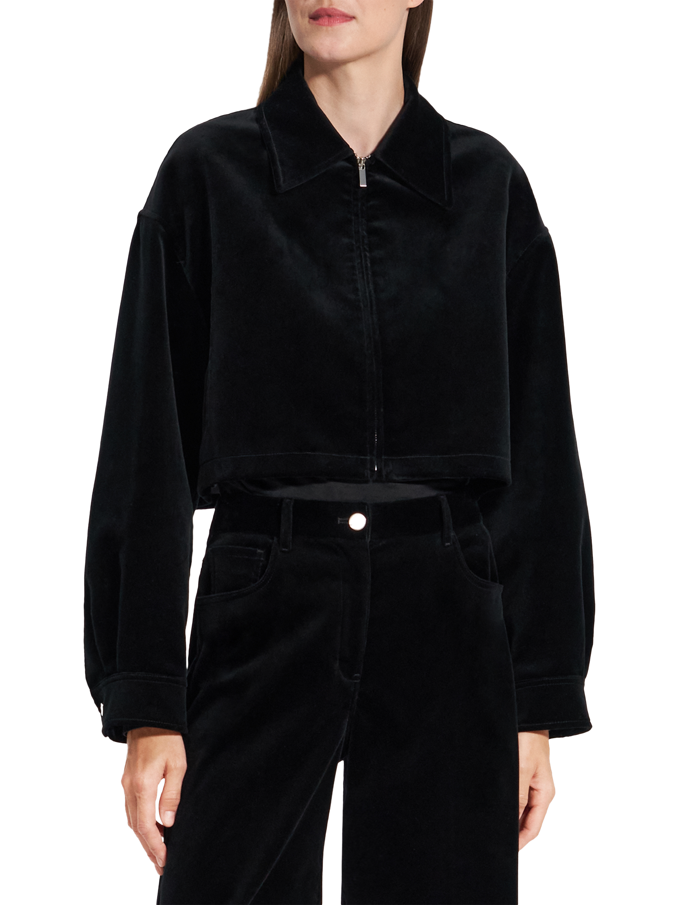 TheoryAline Cropped Velvet Bomber Jacket, Black