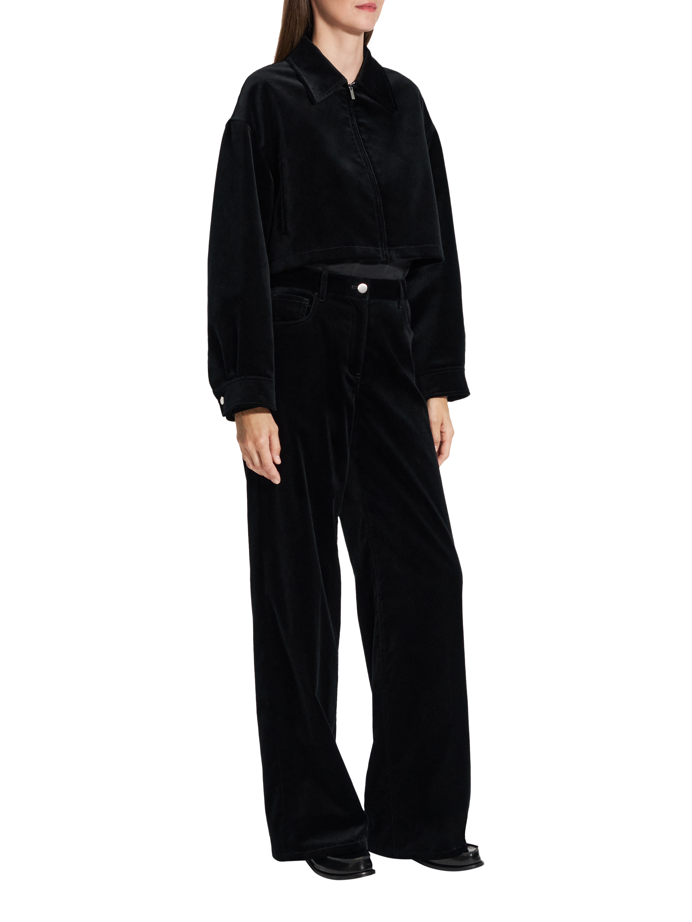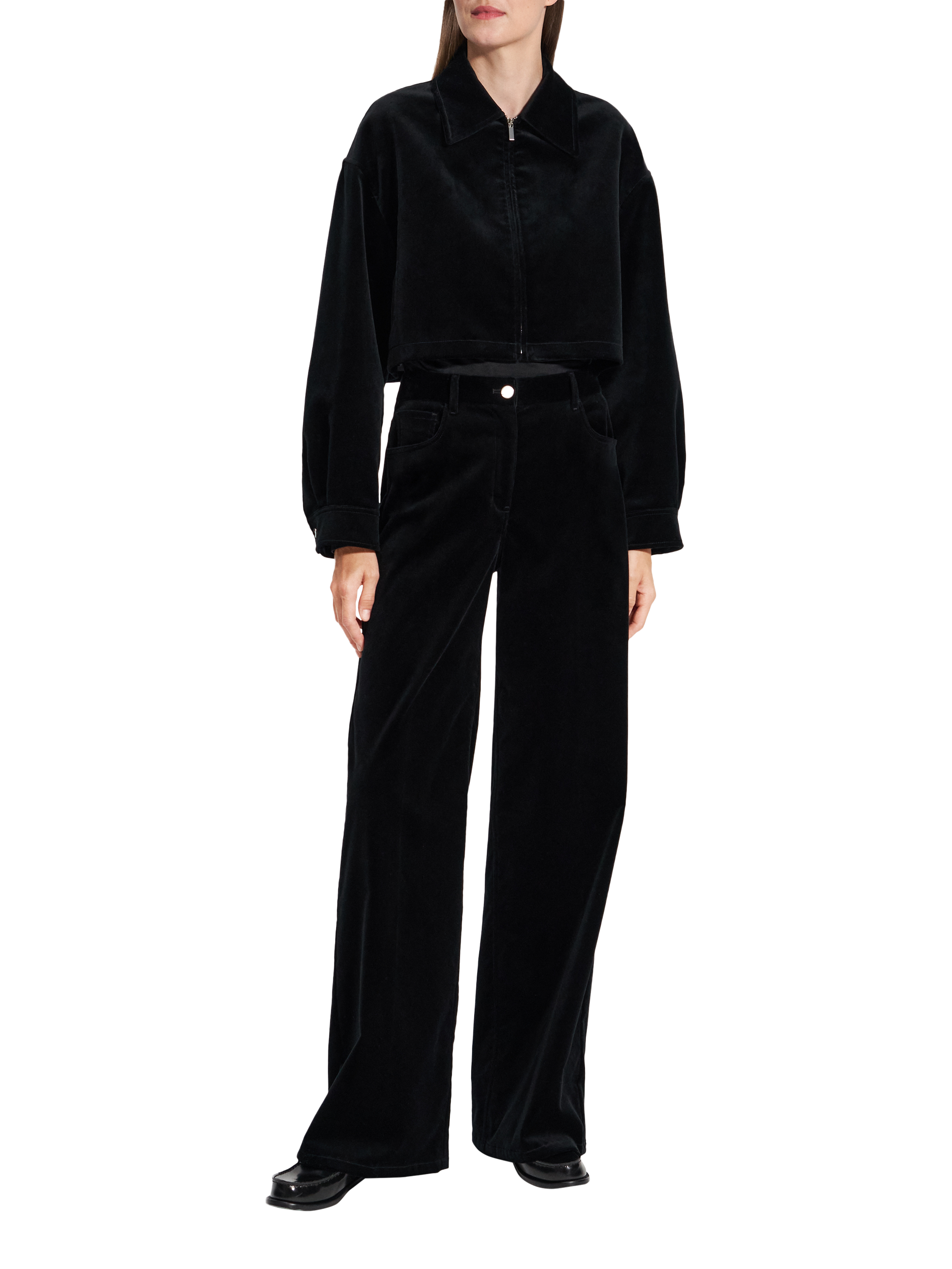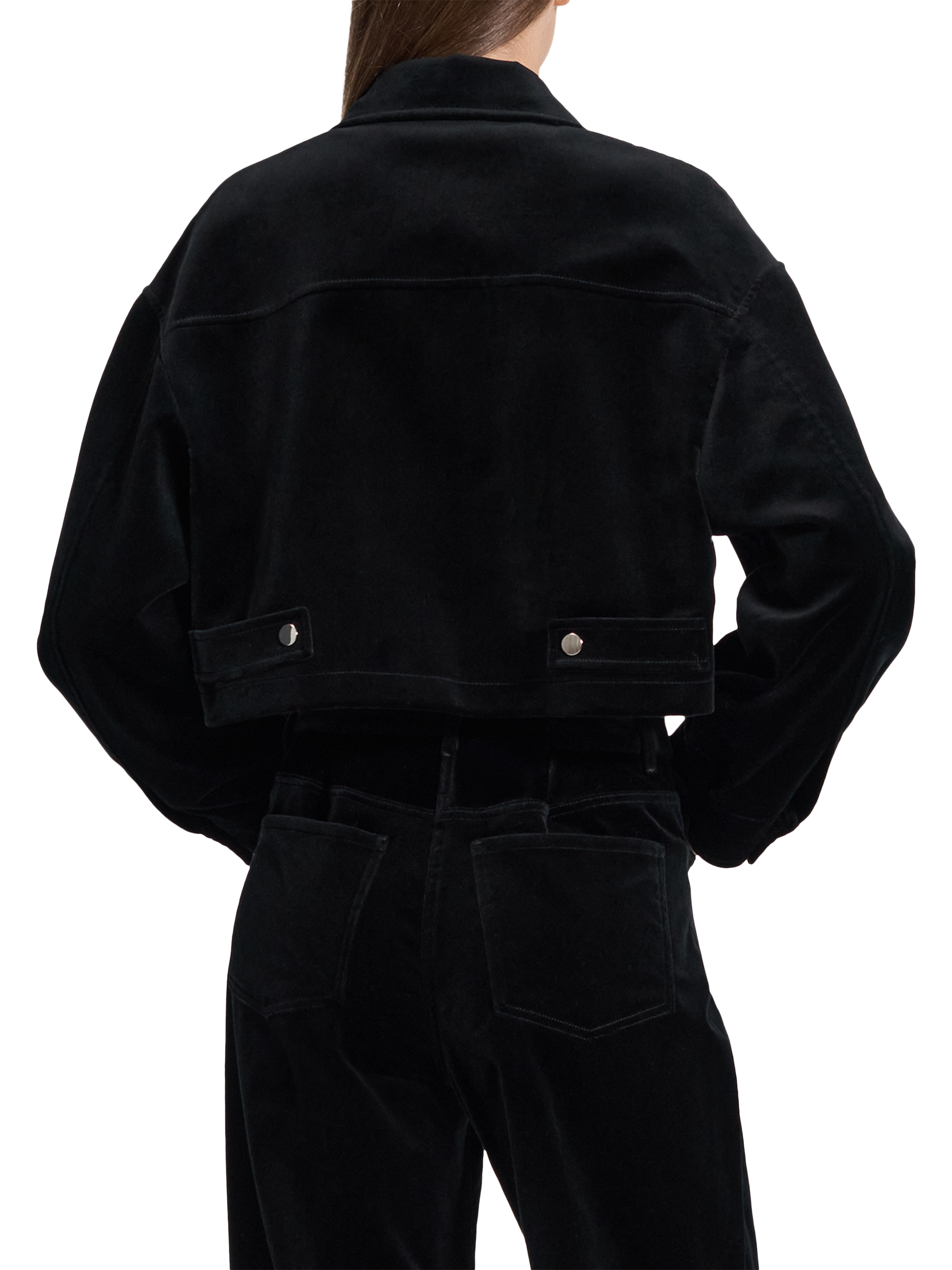 An update to the quintessential jacket is detailed with a pair of slip pockets and a pointed collar. Tailored to achieve an A-line kickback, it's crafted from plush cotton velvet produced by one of the top velvet suppliers in Italy.