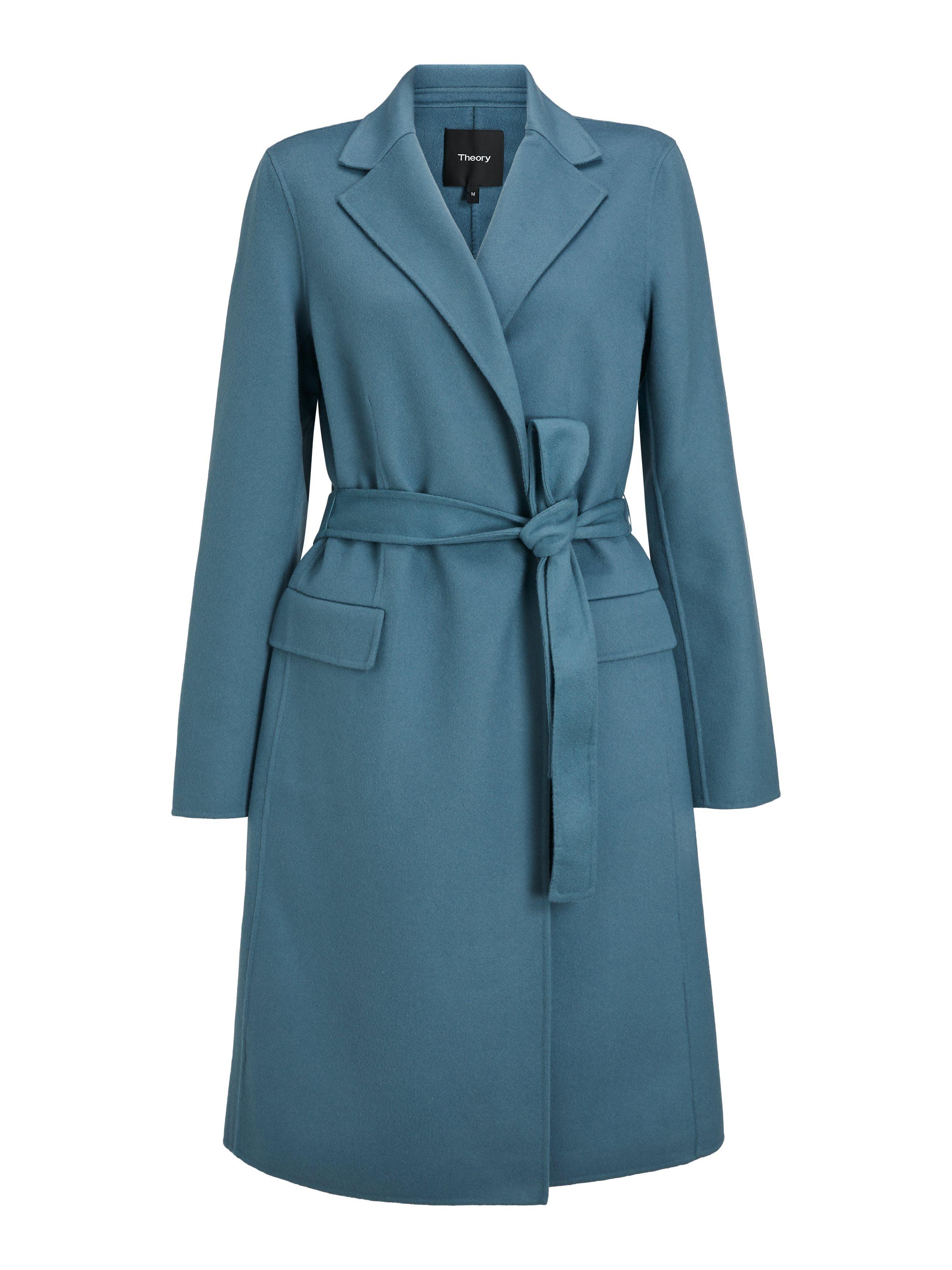 This coat from Theory is made from a rich wool blend with a touch of cashmere for added softness. A brand committed to creating versatile, sophisticated and easy to wear collections, this coat is no exception with a smart lapel collar, wrap over tie belt and subtle shaping. Pull up the collar on extra chilly days adding a bright scarf.