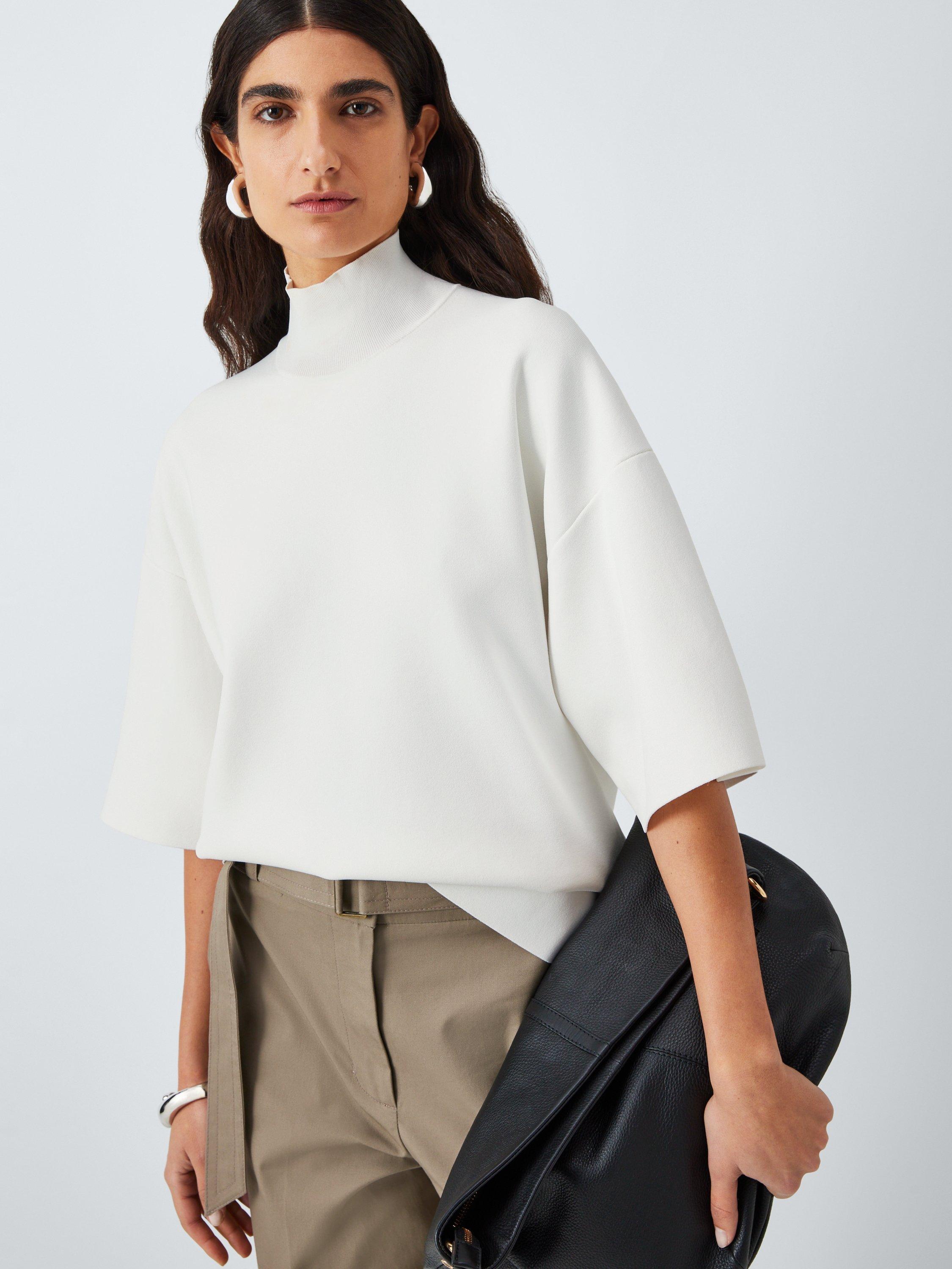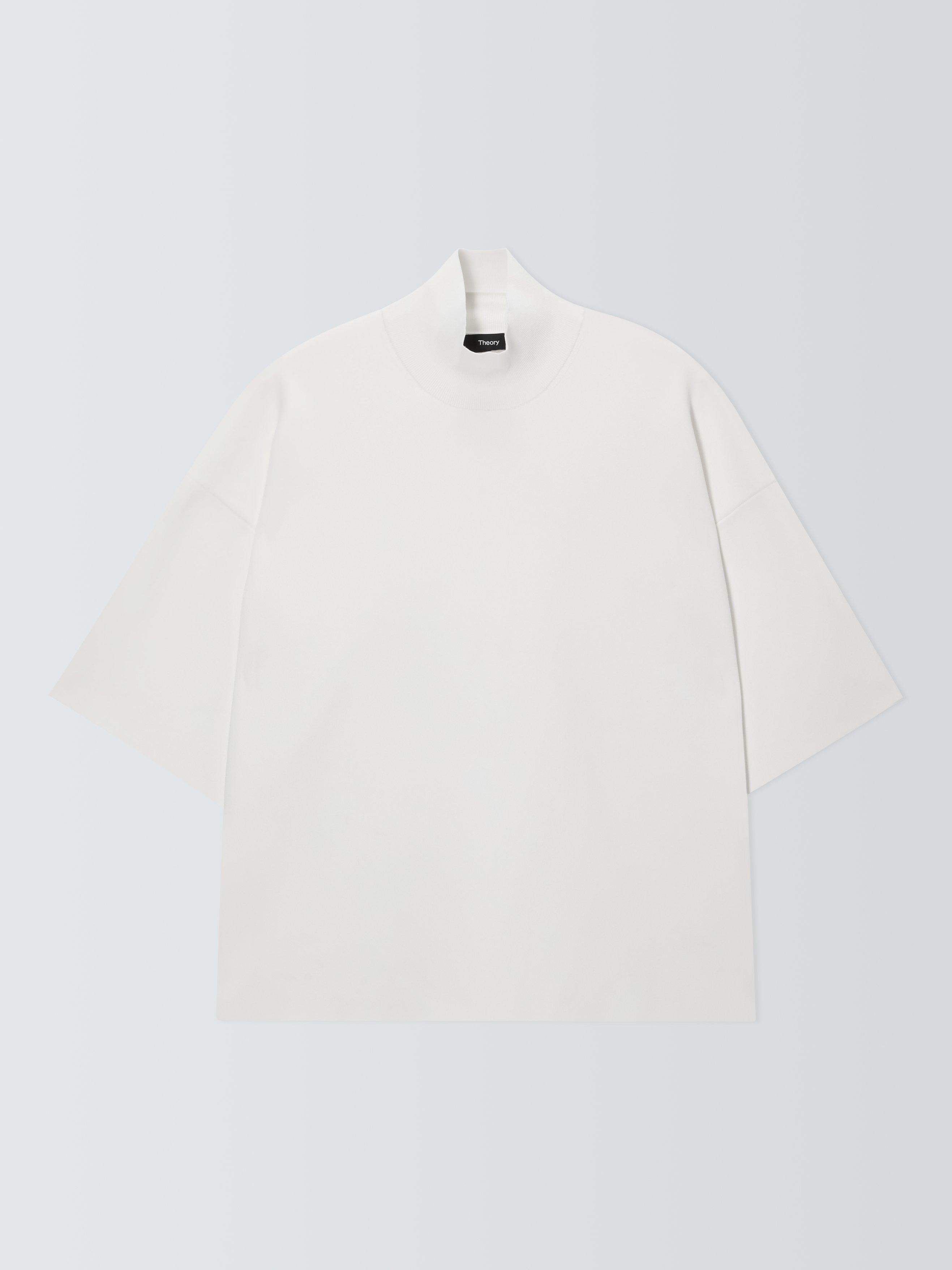 The foundation to all your looks, this top from Theory allows for endless styling opportunities. Softened with a classic turtleneck and short sleeves, it is made from a light yet durable fabric and pairs well with chunky knits in wintery months.