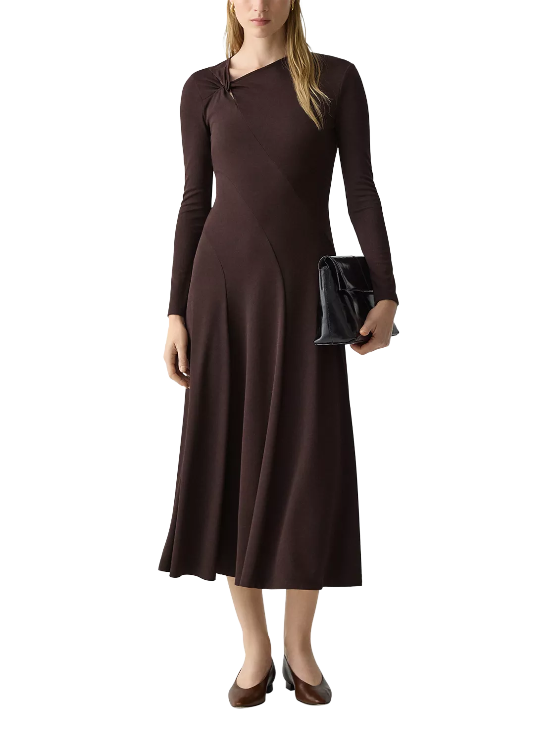 This midi A-line dress from Theory features a twisted open neckline and relaxed long sleeves, ensuring effortless comfort for your daytime plans. Its curved seam lines, regular fit and flared shape let you move with ease.