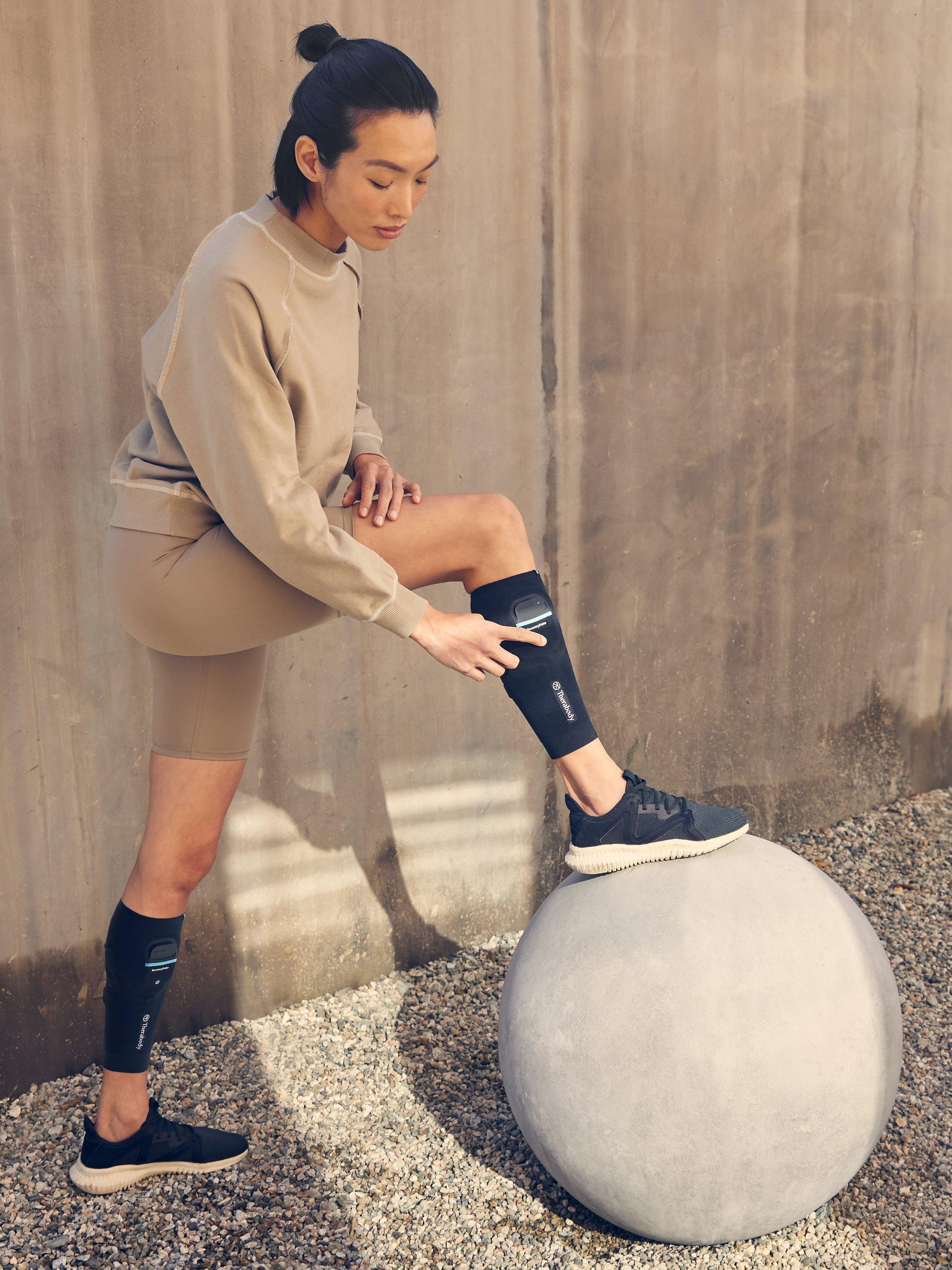 - Do not place any sticky material (like adhesive tape) on the sleeve, as it will damage the fabric. Do not cut or alter the fabric, as electronic components inside may be compromised. If the sleeve is tight upon usage (Leg can’t bend comfortably or results in pain), stop using the sleeve. Follow wash instructions (see notes).