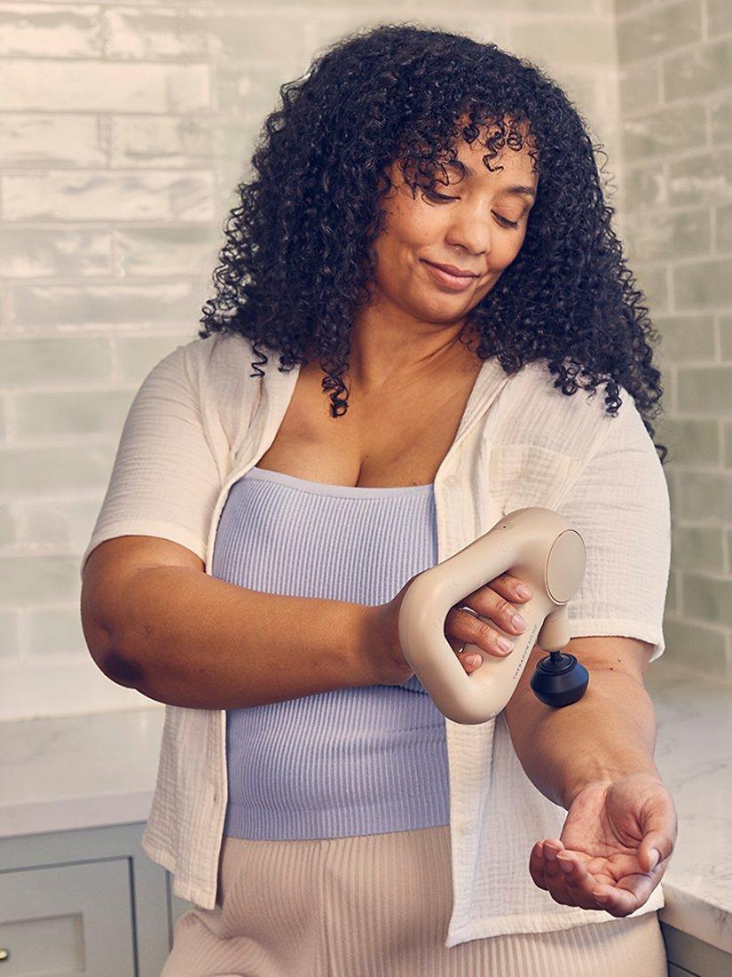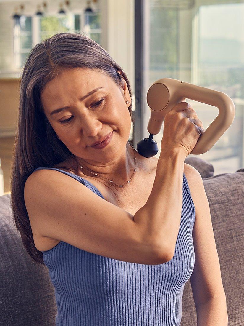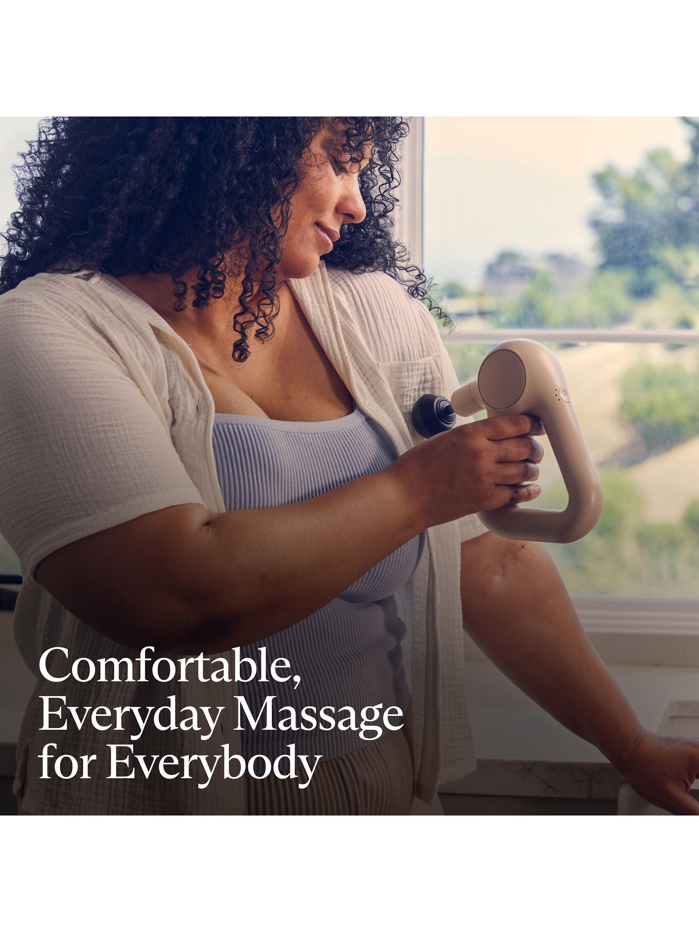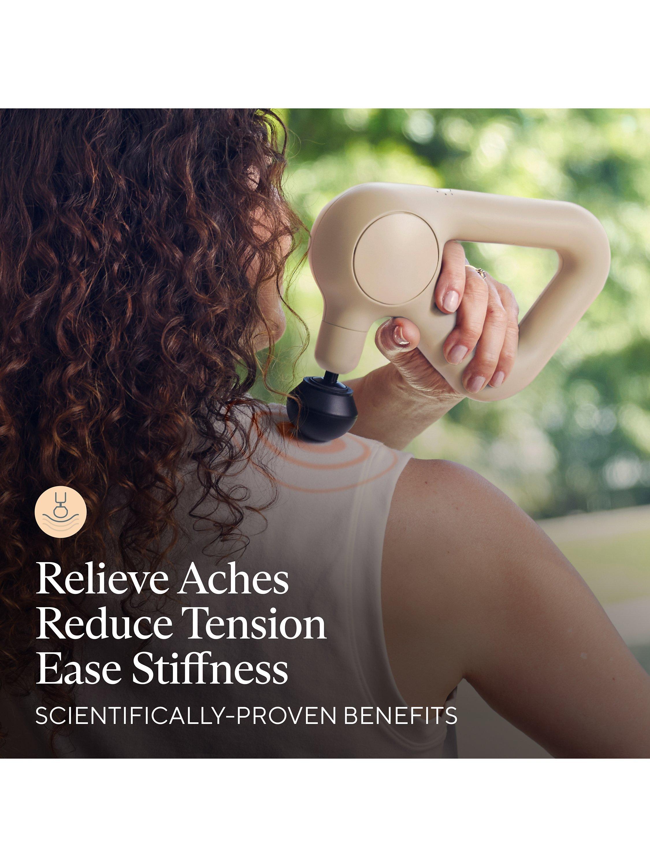 Feel better throughout the day with Theragun Relief, your go-to percussive massage device for everyday comfort. Comfortable and light, Theragun Relief is our most easy-to-use device using scientifically proven percussive massage therapy to provide fast and effective relief from daily aches, pains, tension, and stiffness. The patented triangle grip helps get to those hard-to-reach spots and 3 specialized attachments help treat everything from large muscles to tender, sensitive areas. Theragun Relief makes it easier than ever to feel better and stay active.