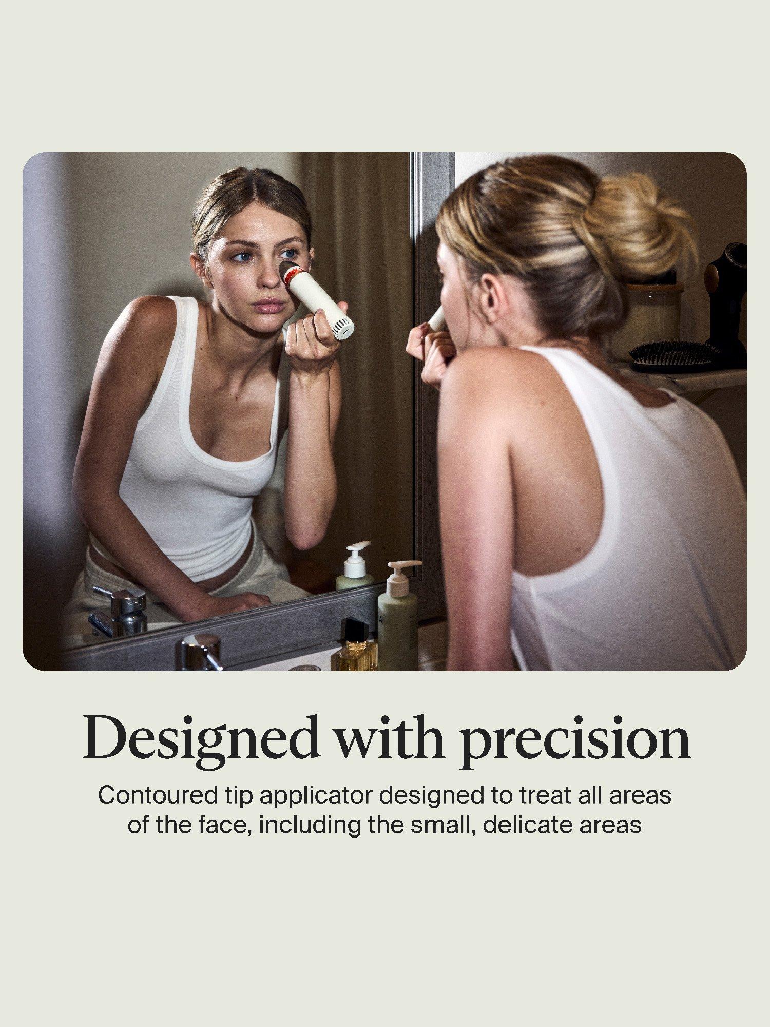 • Contoured, easy-glide applicator tip - The curved shape is designed to reach all areas of the face, even small, hard to reach spots like under the eyes and nasal folds.