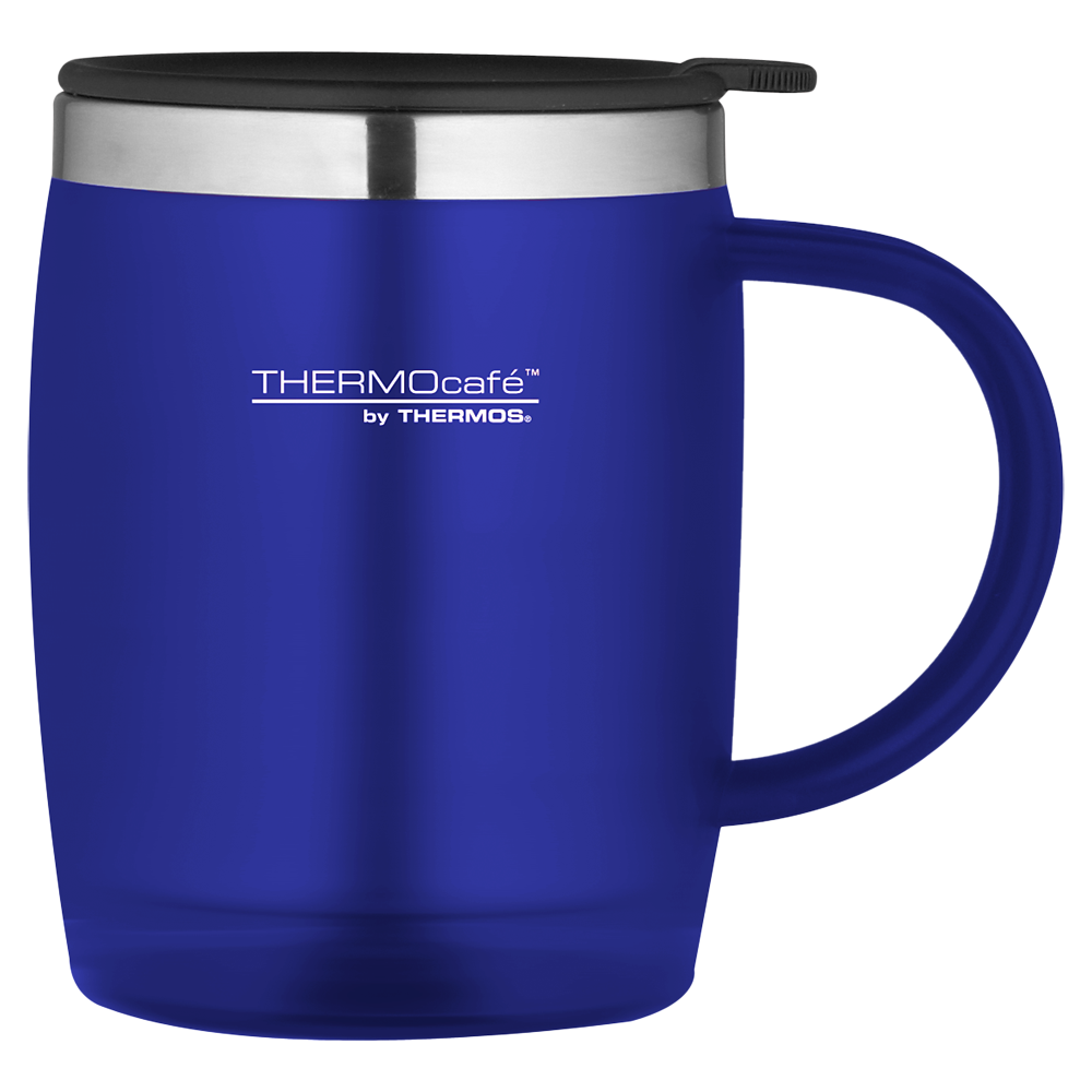 The ThermoCafé Soft Touch Desk Mug is an attractive, portable mug featuring Thermos' double-walled insulation, helping to retain the right temperature for longer. Keep drinks hot or cold thanks to the stainless steel interior.